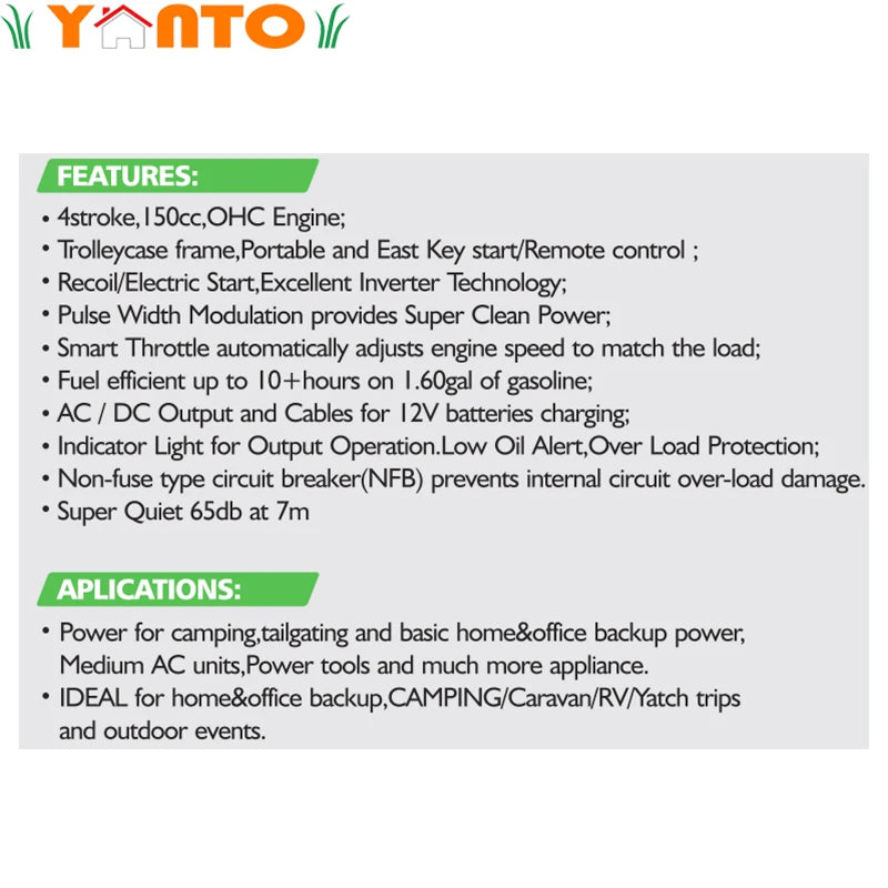 GEN-4000I Portable Mini Petrol Generators 3200W Gas Silent Power Generators Inverter Electric Key Start for Camping and Home Use