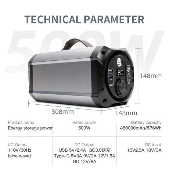 Lithium Ion Battery Camping Lifepo4 500Watt 500Wh Portable Power Station Solar Generator for Home Healthcare energy storage