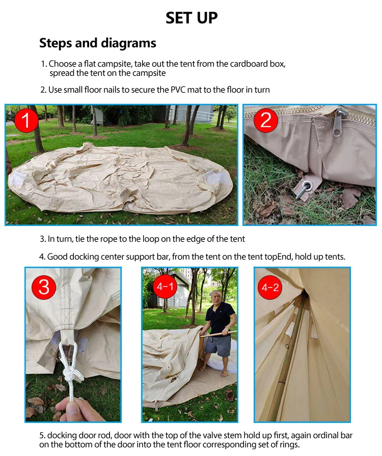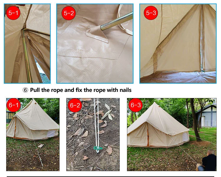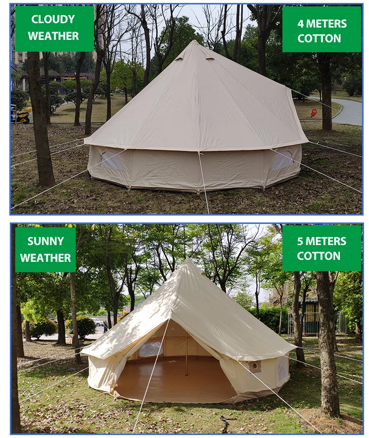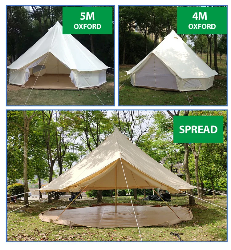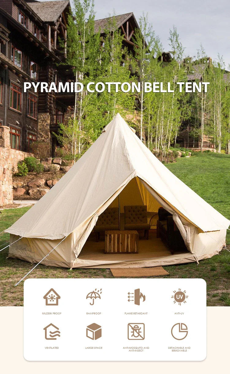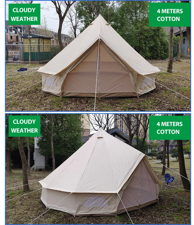 Outdoor Glamping Cotton Canvas Bell Tent Teepee Yurt Tent For 4 Season