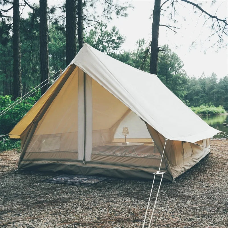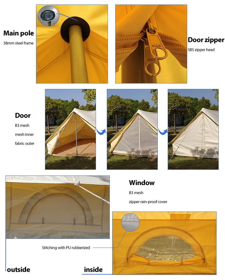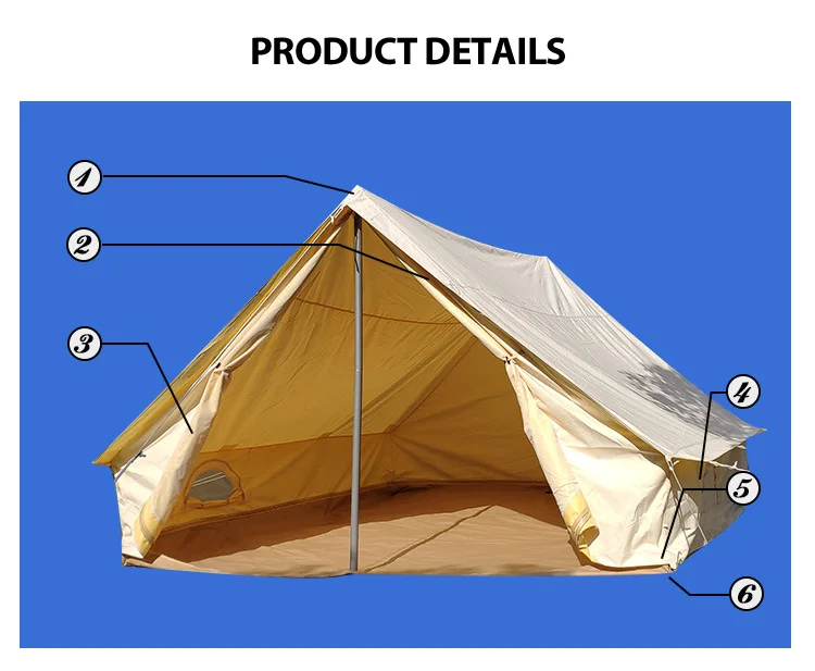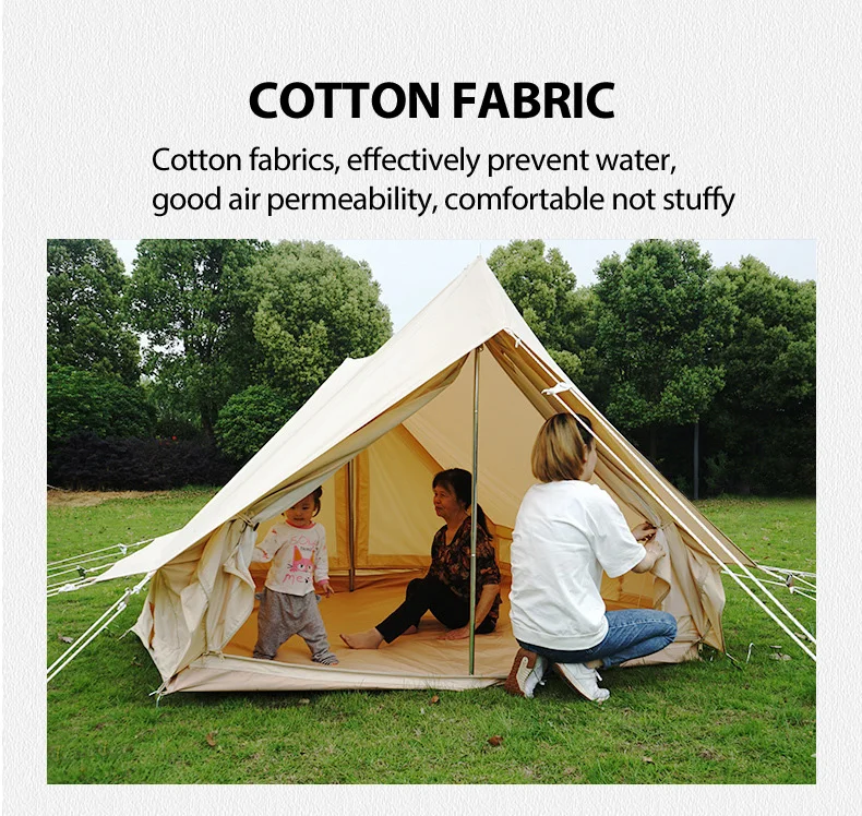Outdoor Glamping Cotton Canvas Bell Tent Teepee Yurt Tent For 4 Season