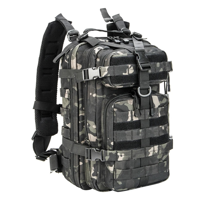 Modular (MOLLE) loops throughout to attach external pouches or hang additional gear Four main exterior compartments, plus one rear