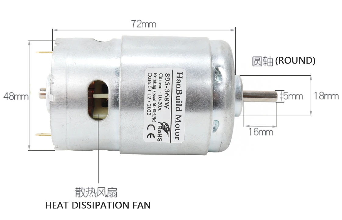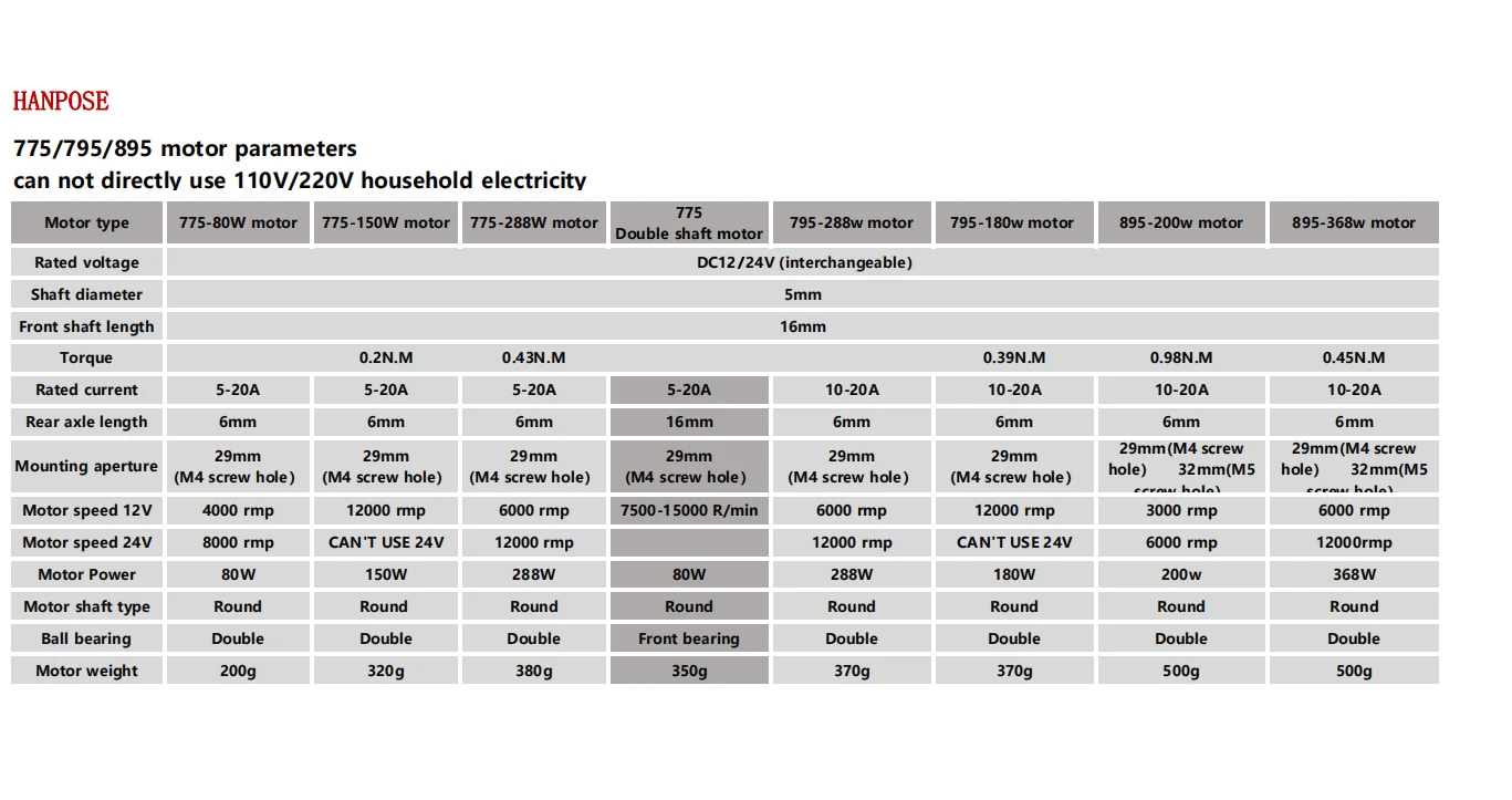 hanbuild DC Motor 895 360W 24V 6000-12000RPM Ball Bearing Large Torque Power Low Noise Brush motor Electronic Component dc motor