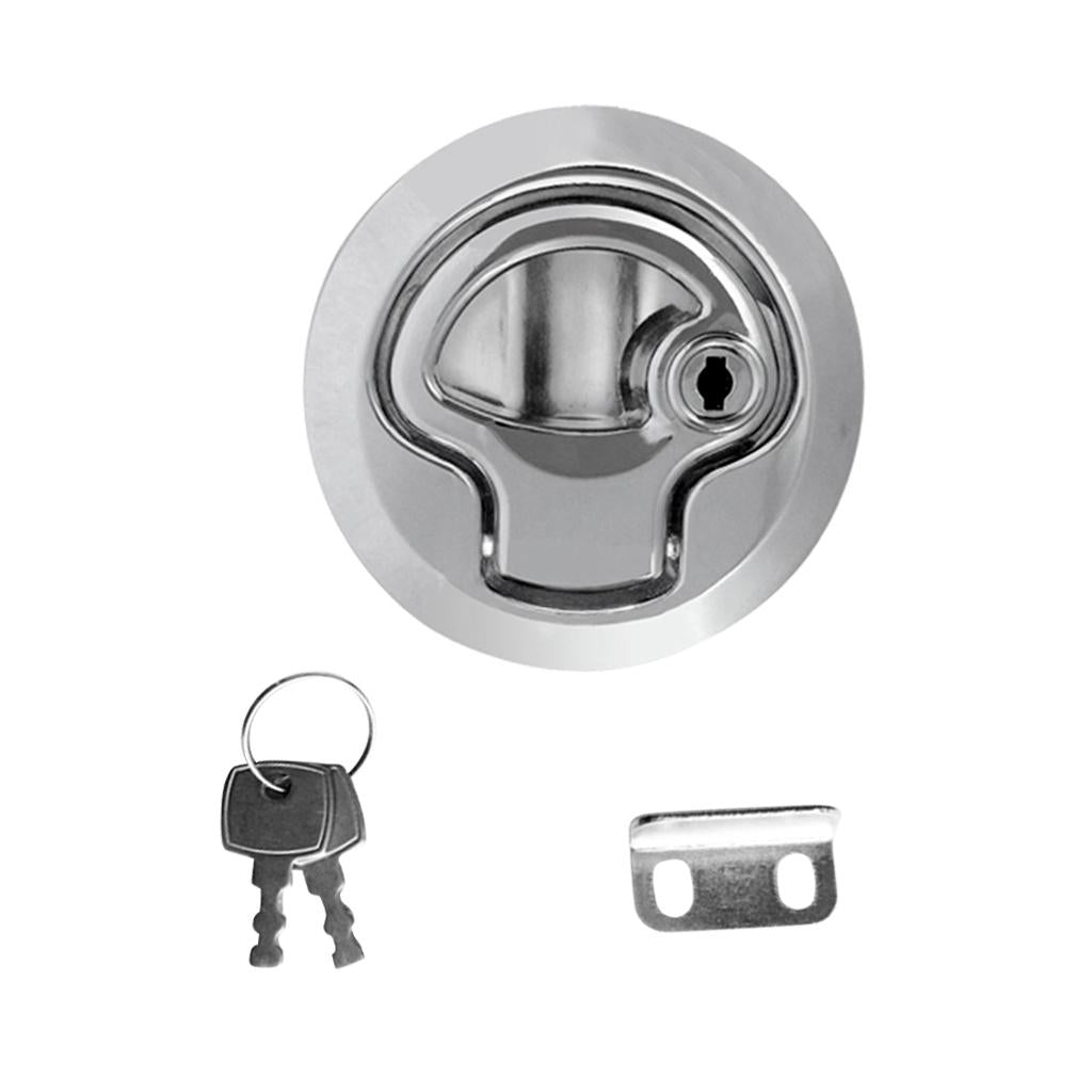 Shanvis 1 Piece Zinc Alloy Chrome Finished 2'' Marine Boat Deck Flush Latch Pull Latch Caravan Door Latch & Keys Suits 2-12mm Deep
