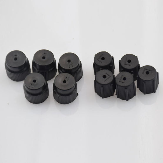 5 Caps Black High Side Port 16 mm and 5 caps Black Low Side Port 13mm.
