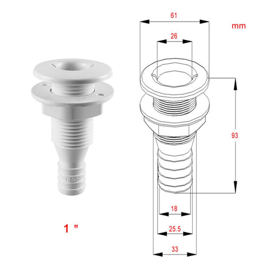 Our Thru-Hulls are meant for installation through the transom and are good for overflow use in livewell installations or as an exhaust port for a bilge pump.