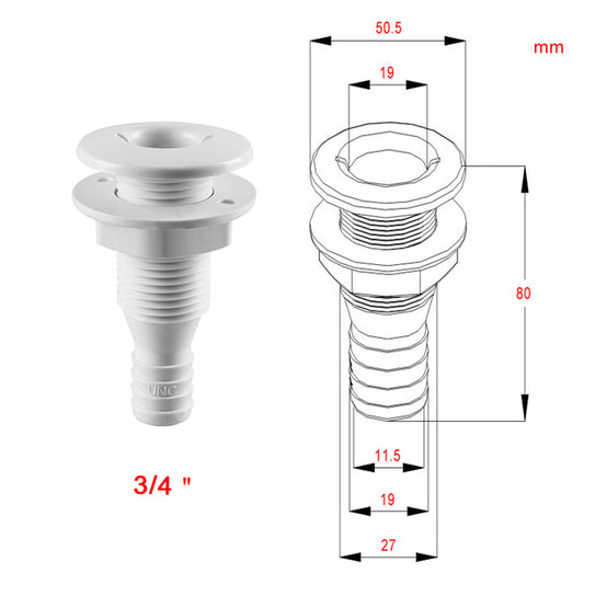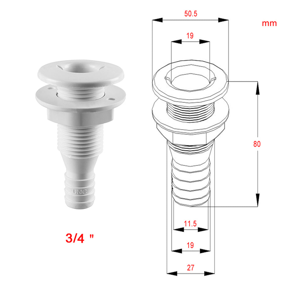 Our Thru-Hulls are meant for installation through the transom and are good for overflow use in livewell installations or as an exhaust port for a bilge pump.