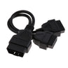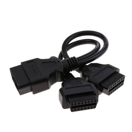 This OBD II cable splitter will allow you to split our one OBD II port into two accessible OBD II Female ports.