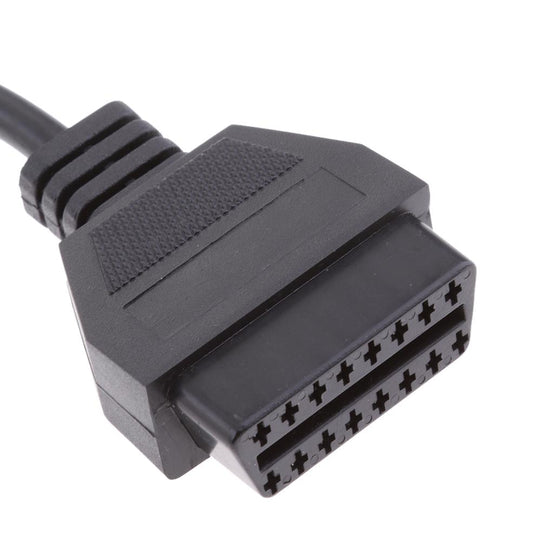 It connects a 16 pin OBD2 diagnostic tool to a car with 7 pin socket.