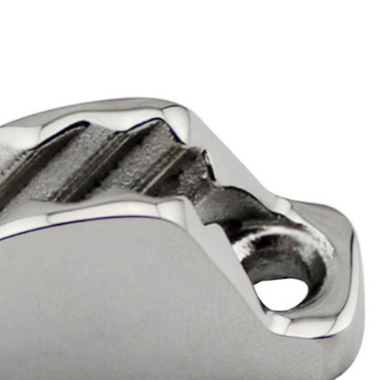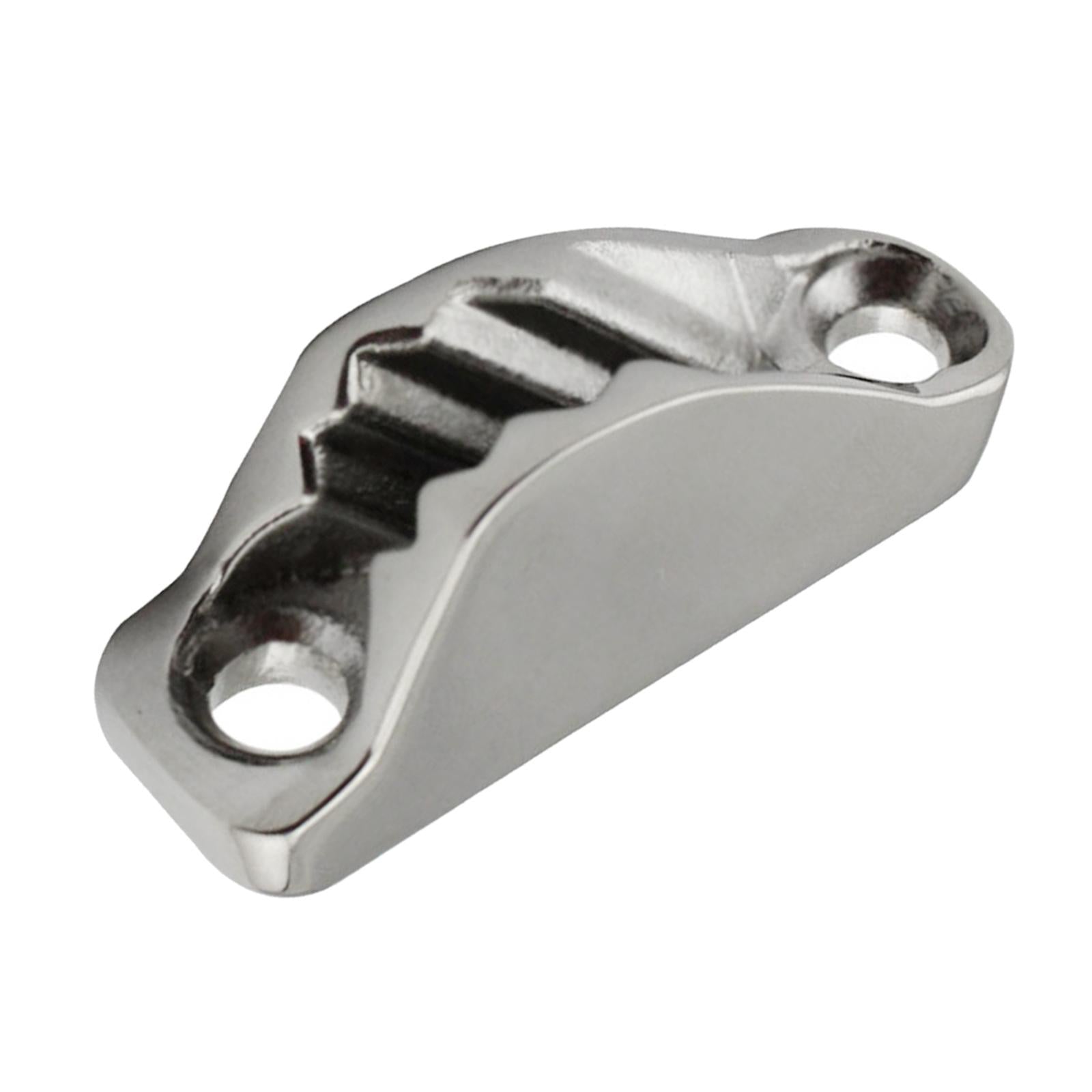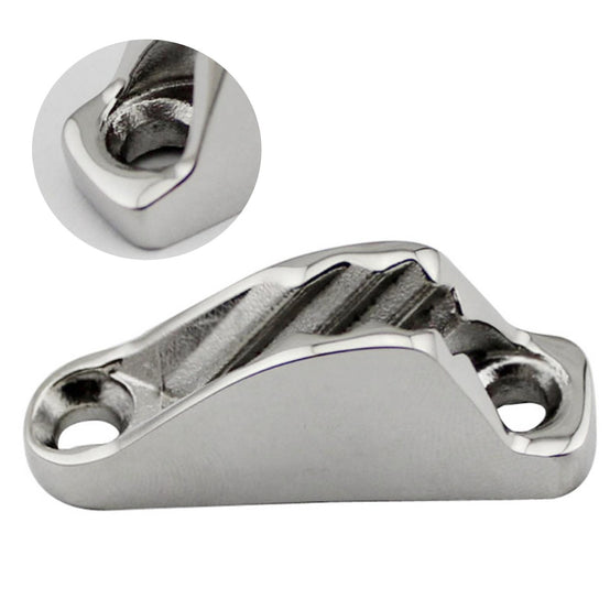 A clam cleat (or jam cleat) in which the rope is held between two fluted stationary pieces.