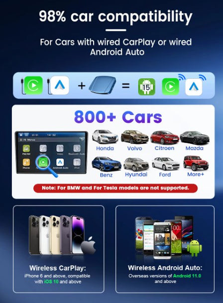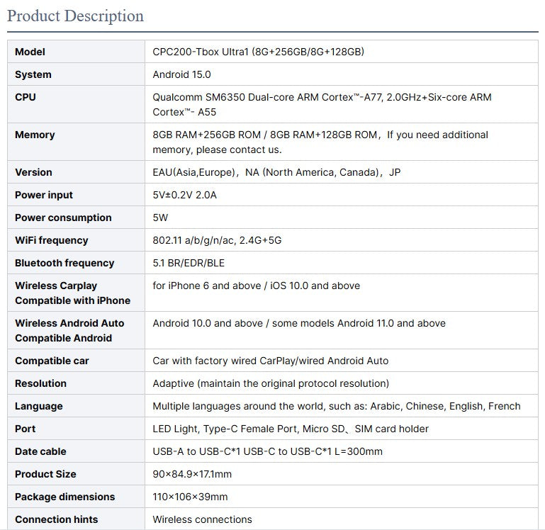 8gb 256gb Wireless Carplay Adapter carlinkit Android 15 Ai Box Android Auto Dual Wifi Gps 5g Car Play for Converting 6350 Chip