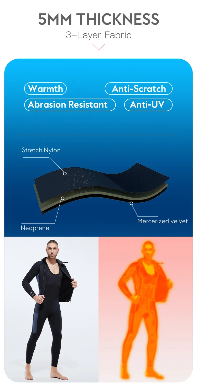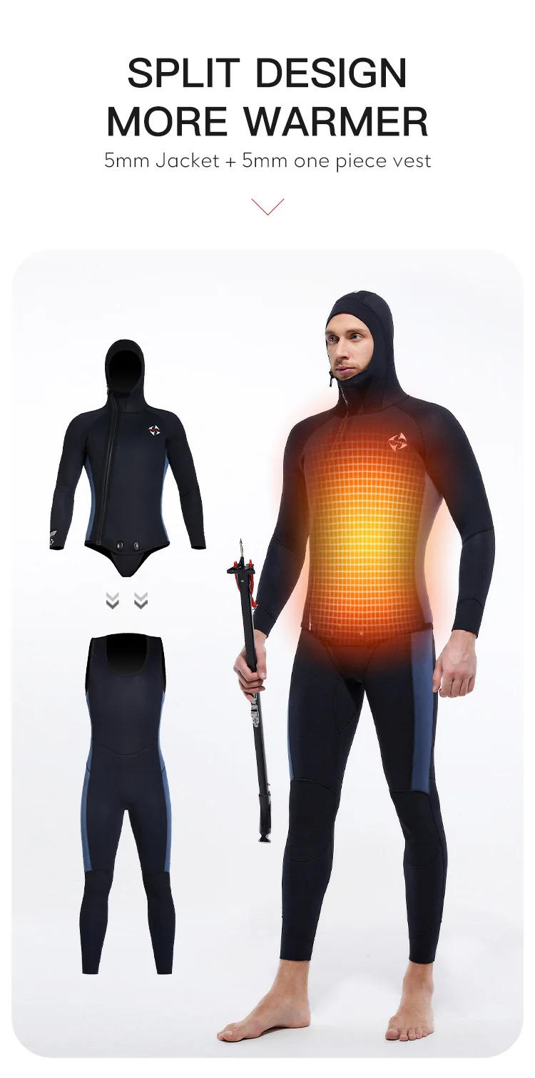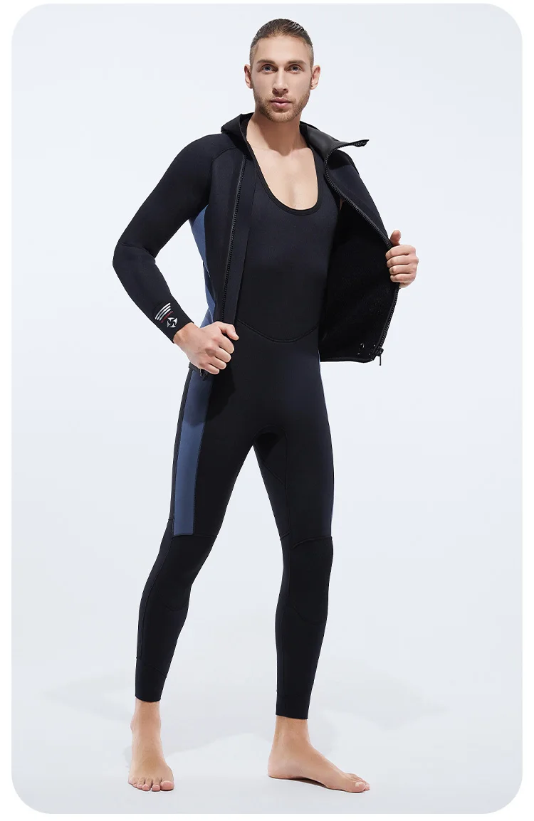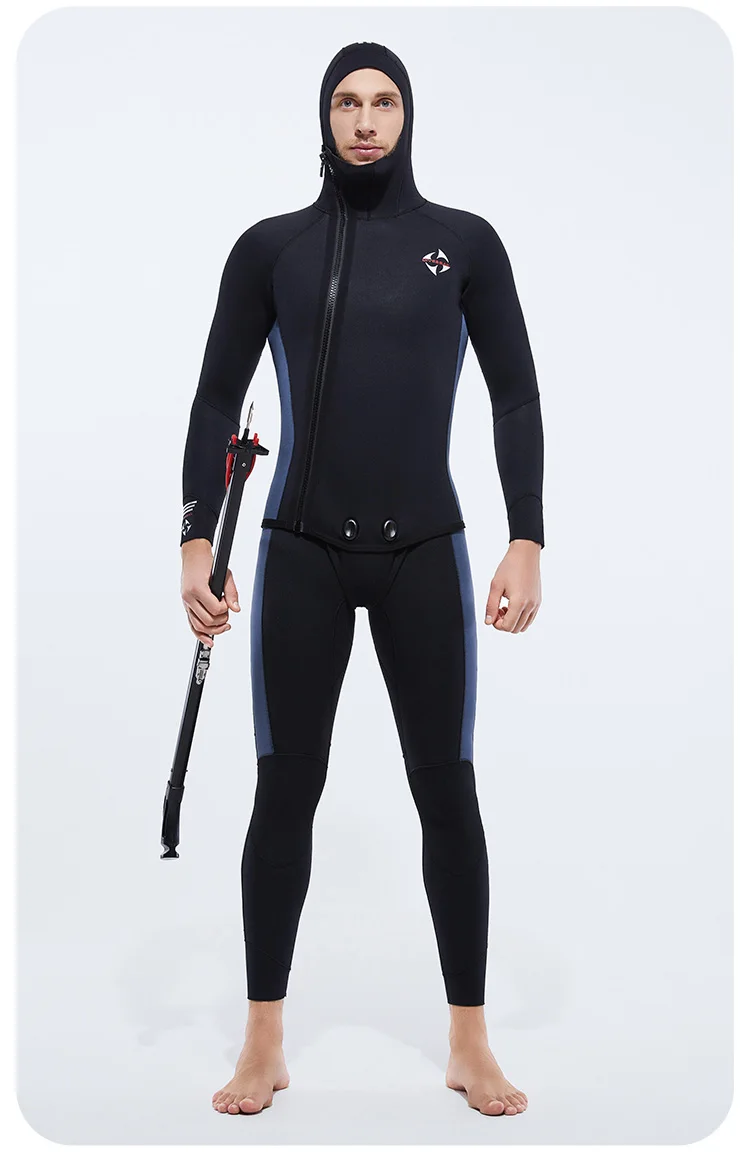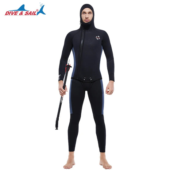 5MM Neoprene Plus Velvet Scuba Diving Suits Fleece Lined Hooded Wet Suit Two Piece Long John Wetsuit for Men