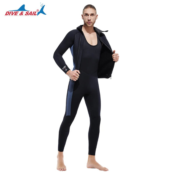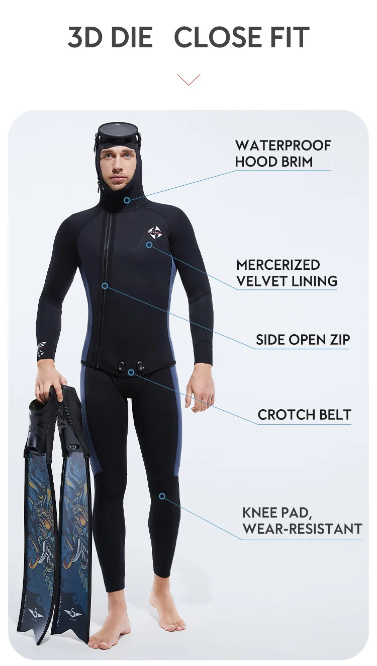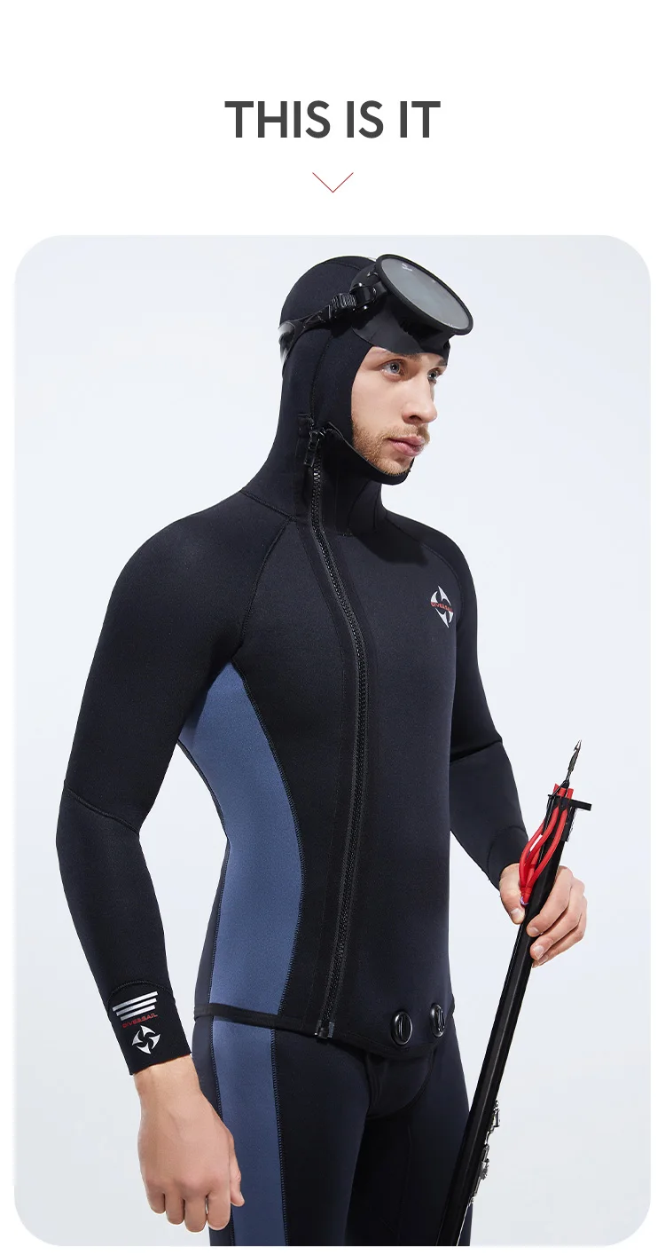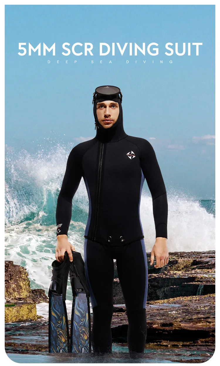 5MM Neoprene Plus Velvet Scuba Diving Suits Fleece Lined Hooded Wet Suit Two Piece Long John Wetsuit for Men