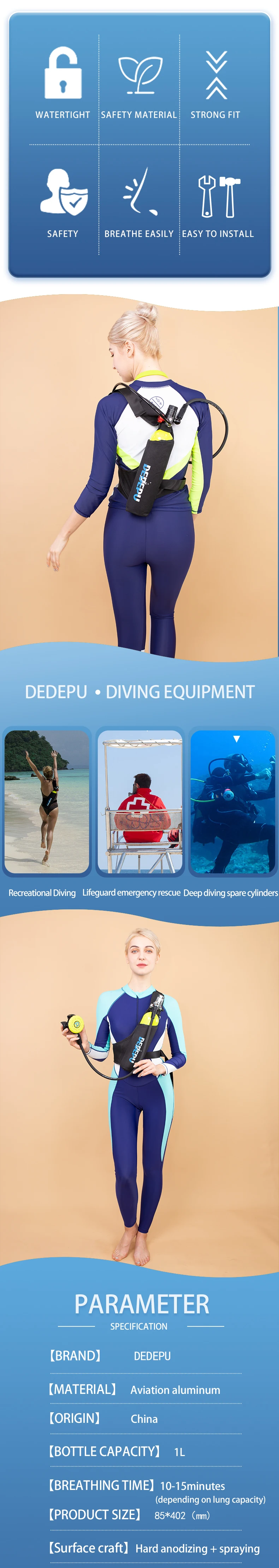 DEDEPU Underwater Breathing diving Equipment Mini Diving Compressor With Scuba Diving tank 1 Litre Capacity 15-25 Minutes