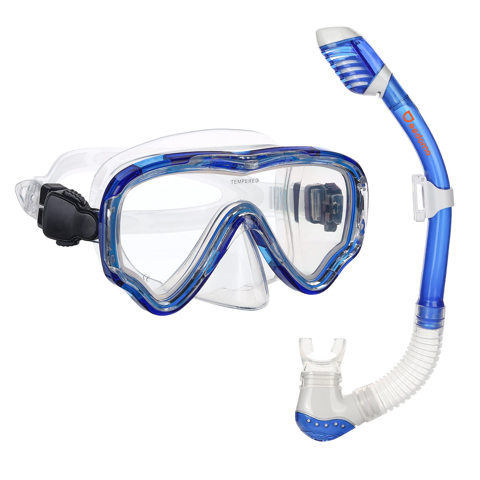 Deedomo Anti-fog Diving Mask with Tempered Glass Scuba Diving Mask Easy Breathing Gear for Snorkeling Swimming Kids Snorkel Set
