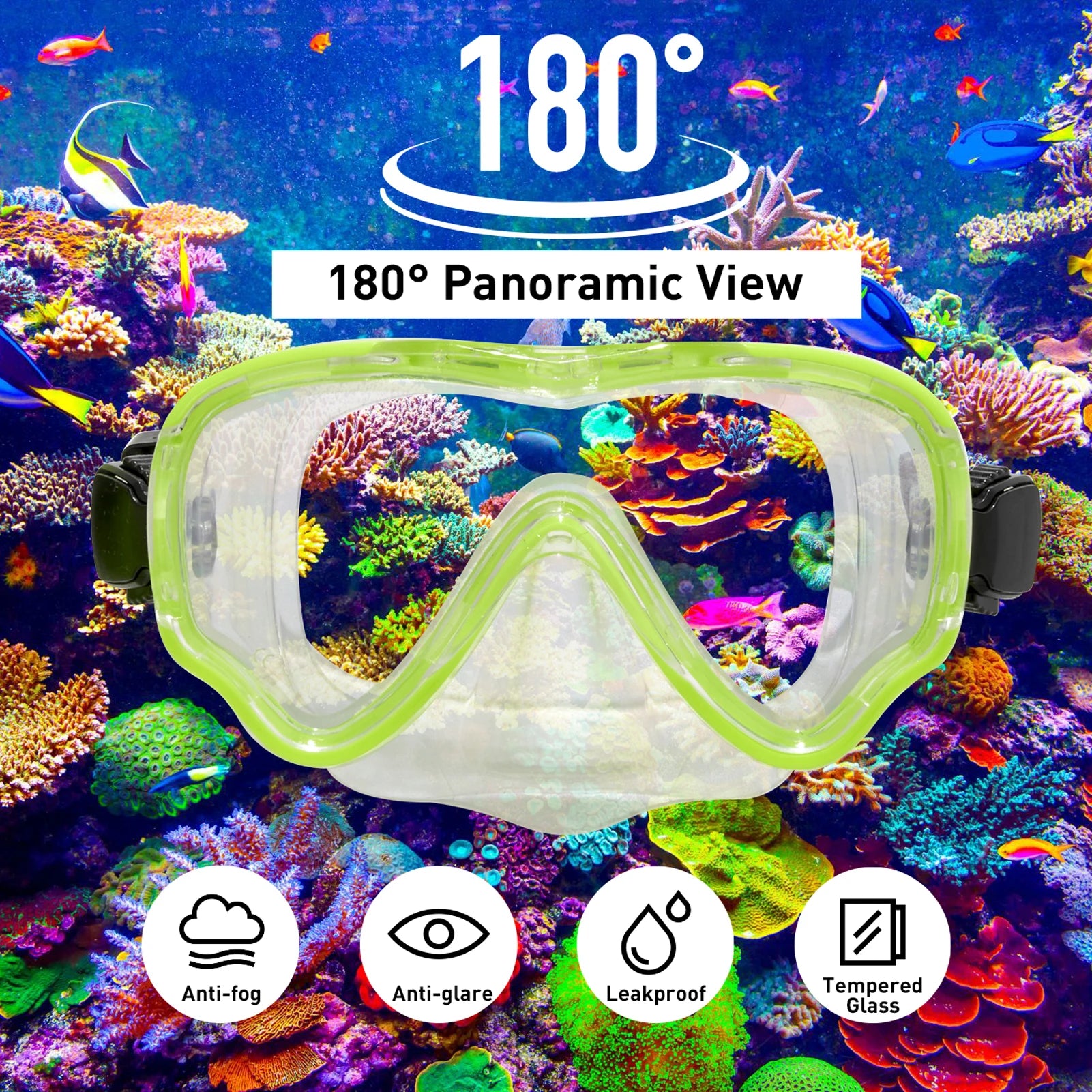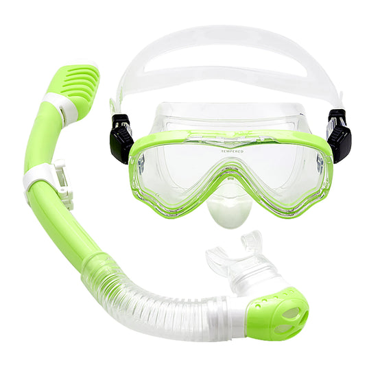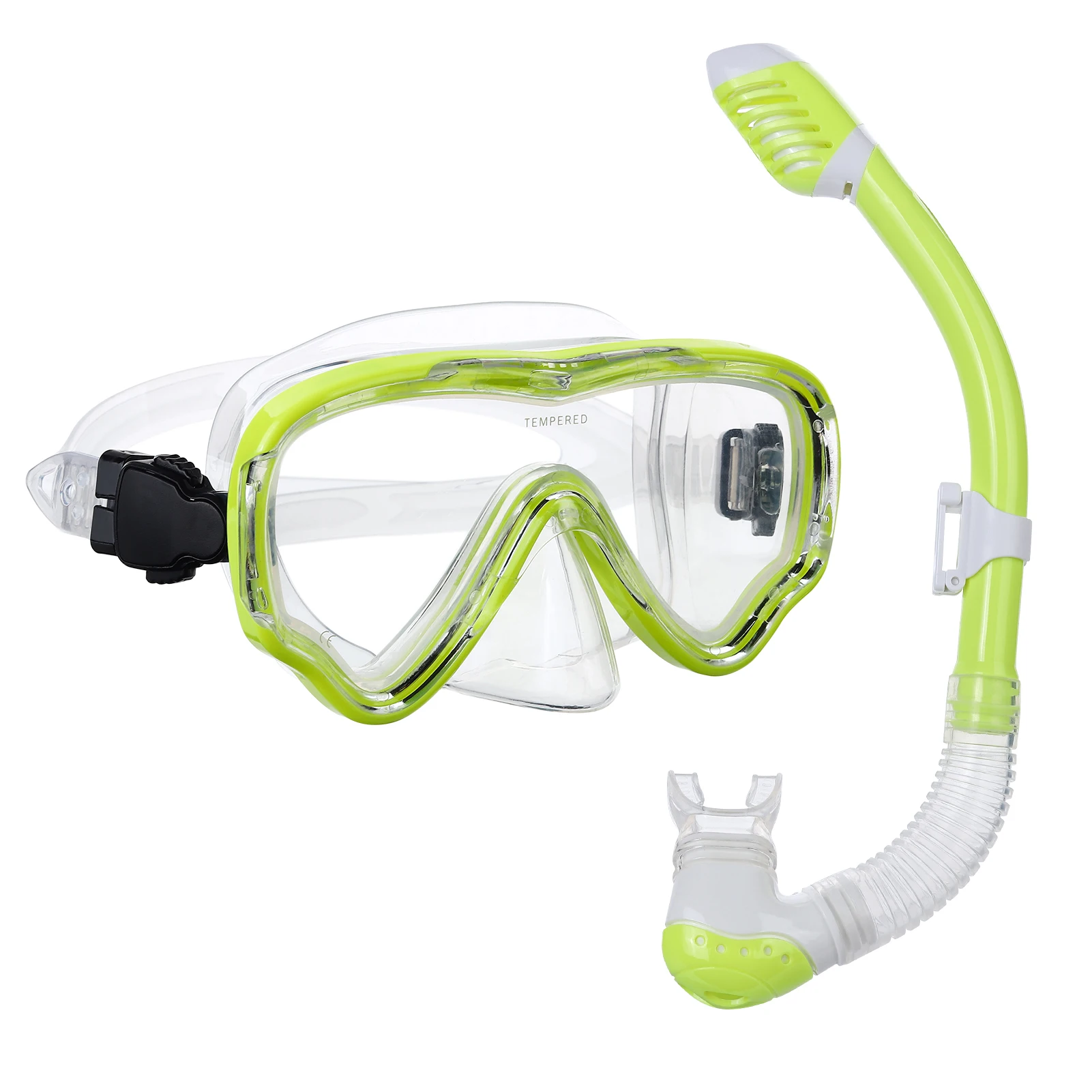 Dry Top Snorkel Set with Impact Resistant Tempered Glass Diving Mask Watertight and Anti-Fog Lens Snorkel Mask Kids Snorkel Set