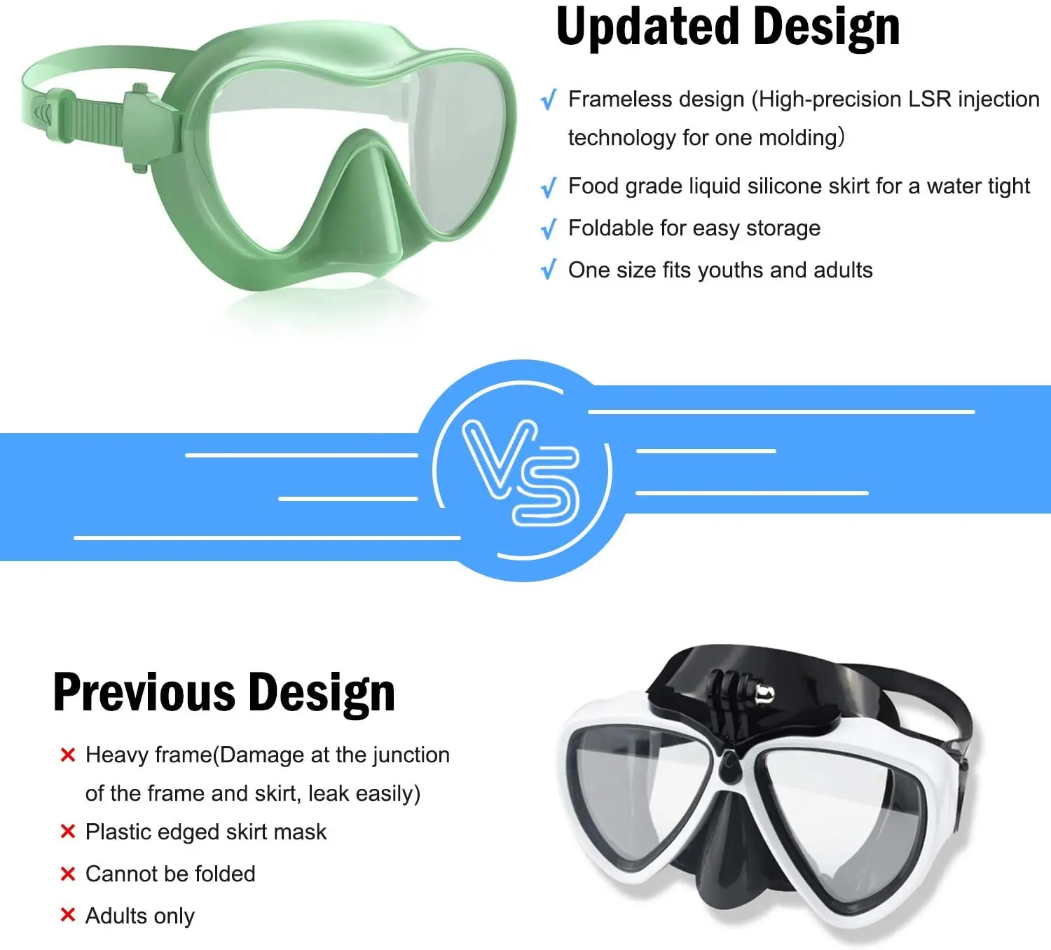 Frameless Diving mask,low volume diving mask , 100% food grade silicone ,anti fog anti leak,quickly release button,very similar to