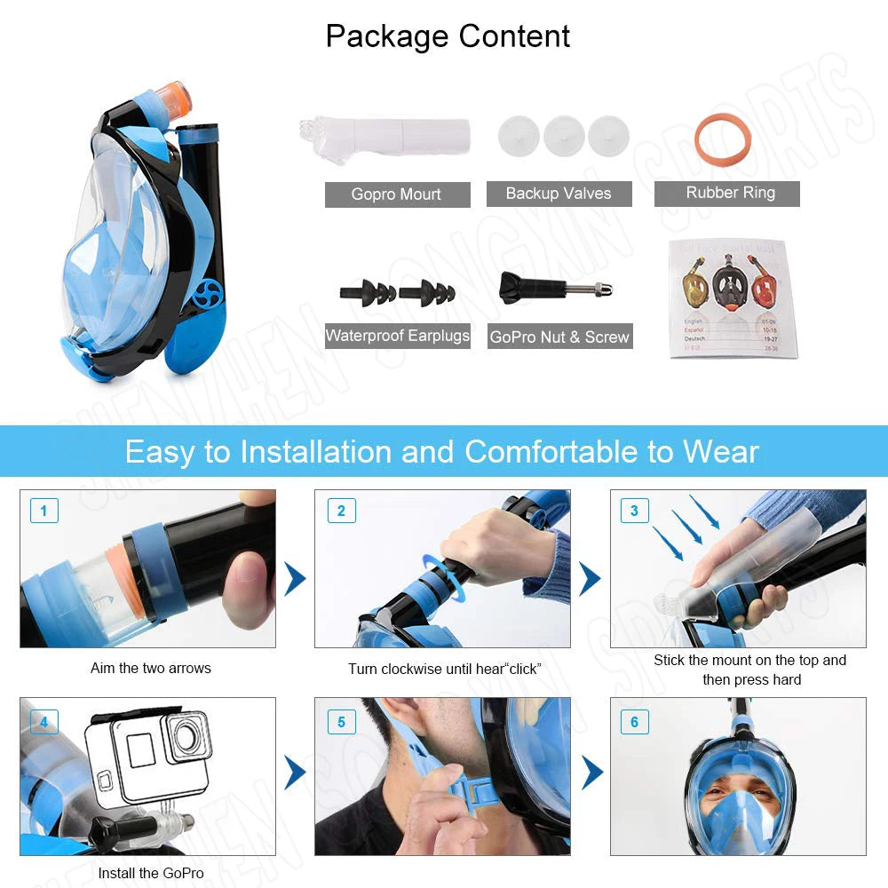 | Product name | New Design High Quality Snorkel Mask Full face Anti Fog 180 Degree View Diving mask/Scuba Diving equipment |