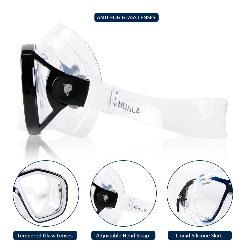 Amazon Super Hot Sell Tempered Glass diving strap mask For Adults