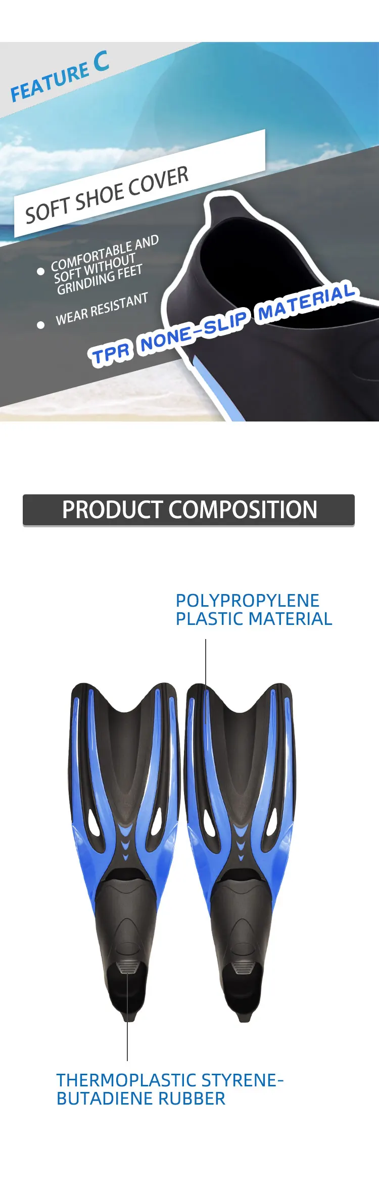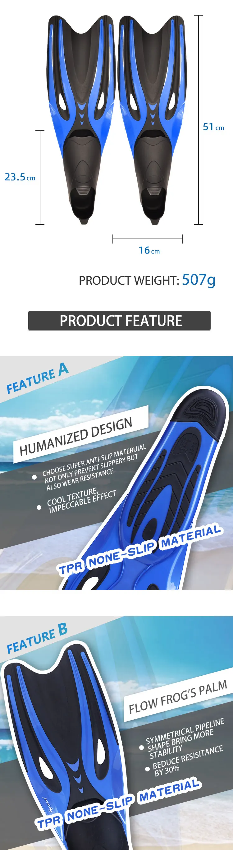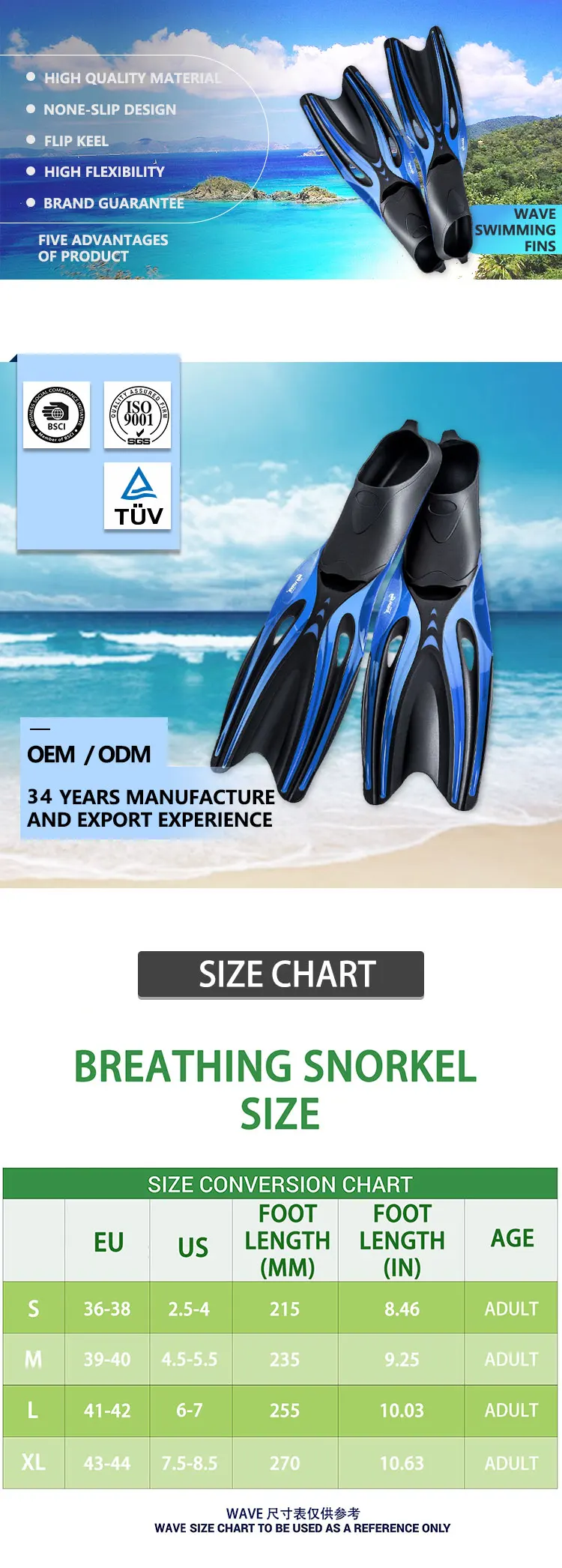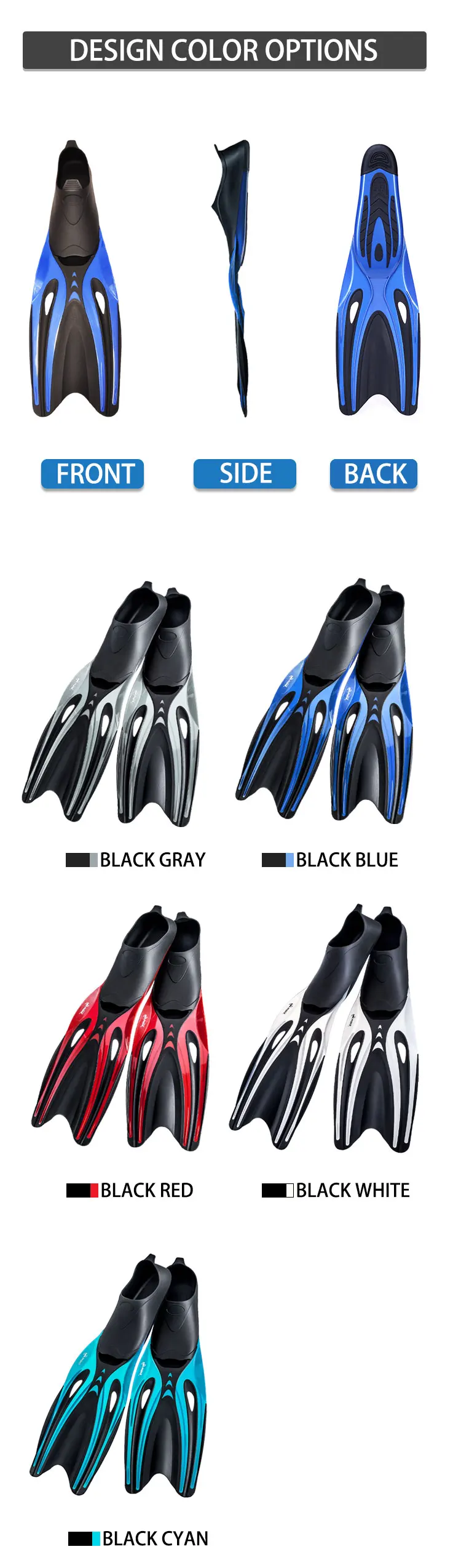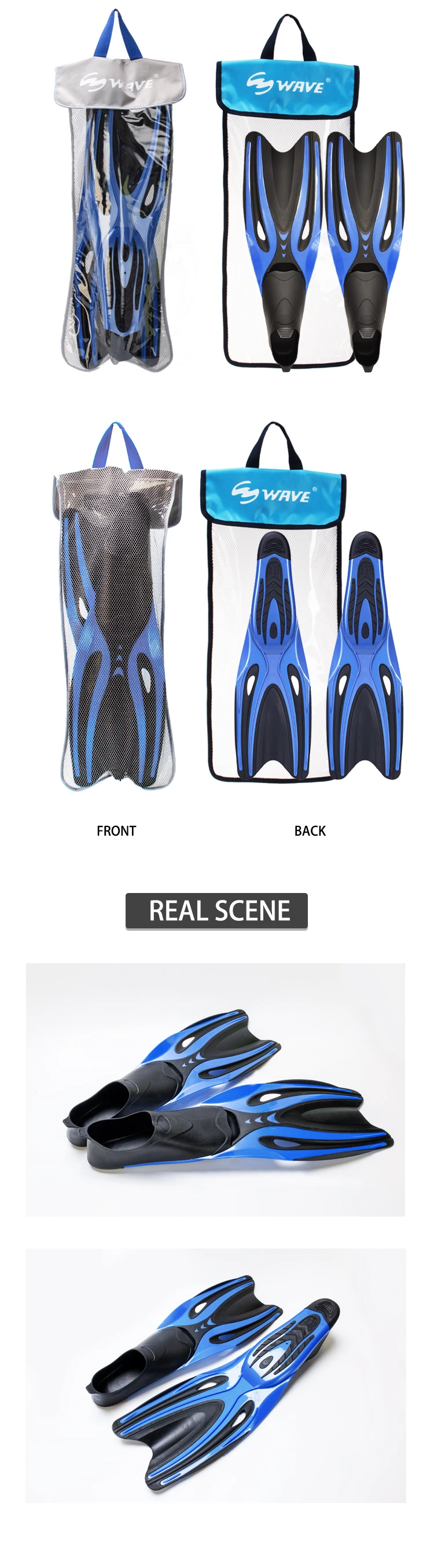 Wave wholesale OEM support professional equipments full foot pockets fin scuba free diving fins