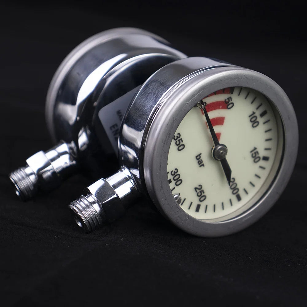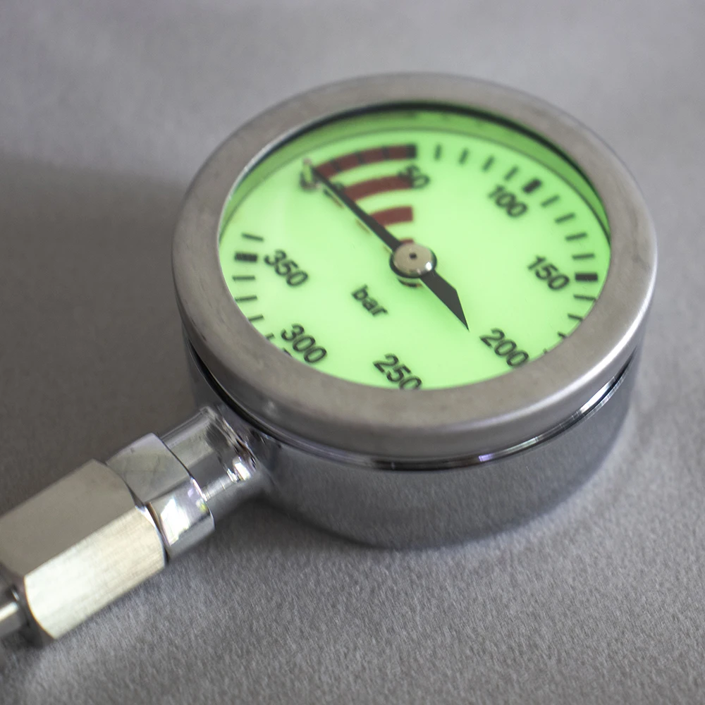 Range graduations: 0-300 bar, 0-360 bar, 0-400 bar, 0-450 bar, 0-5000 psi, 0-6000 psi; - Oxygen clean on demand; - Certified