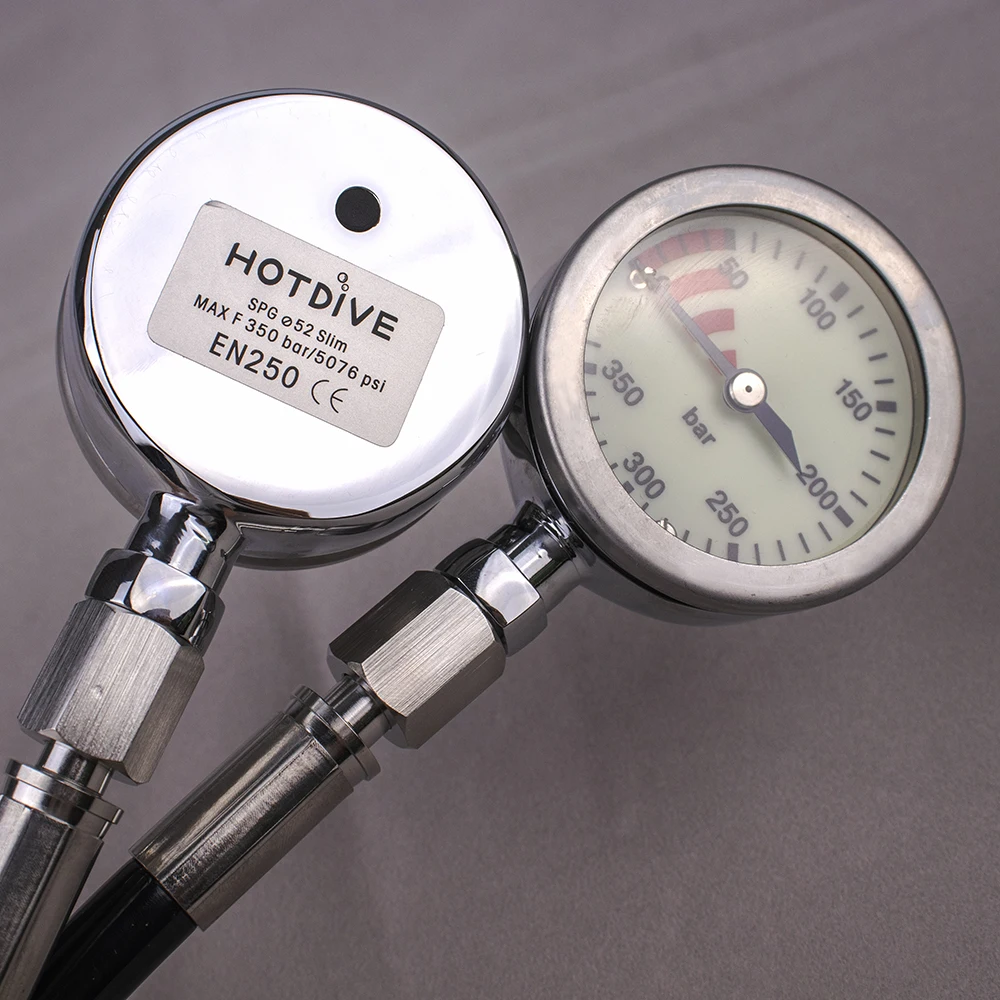 even with hard shock. - The gauge is used often in technical diving and has a high level of accuracy and reliability. - Preferred