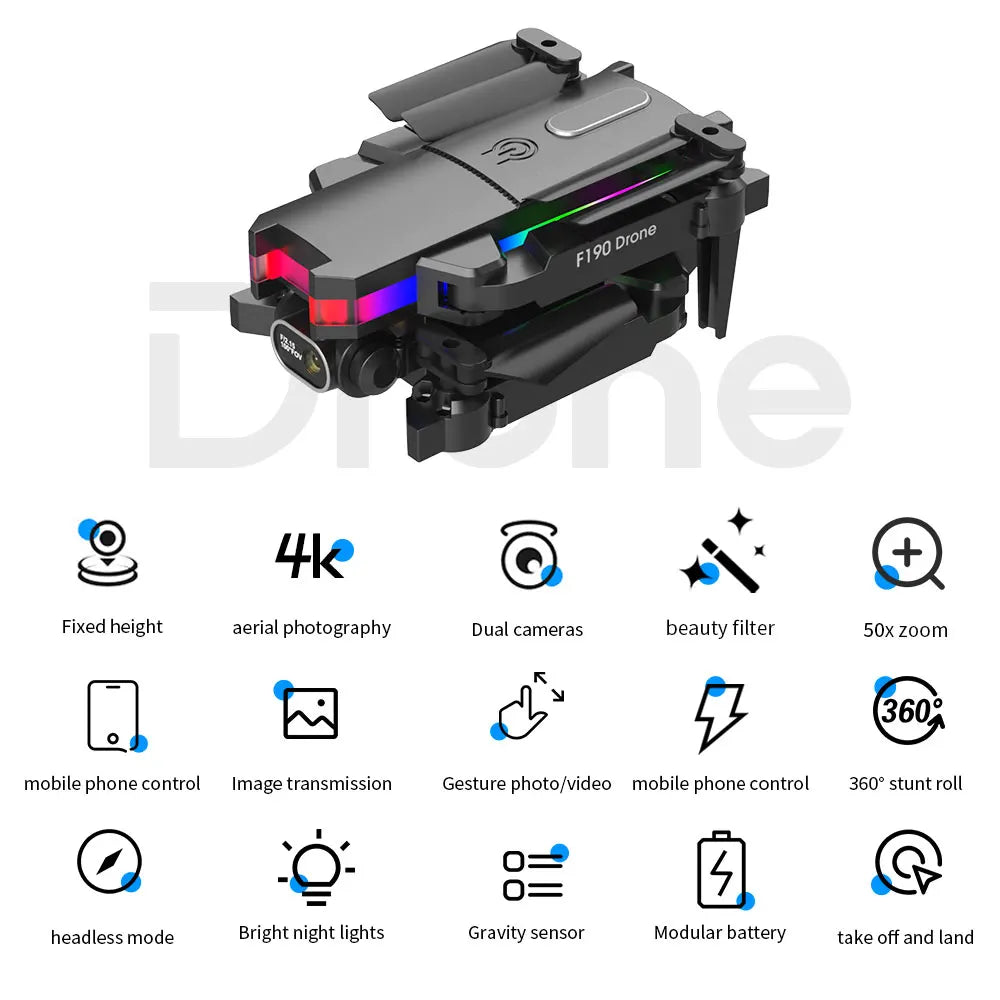 Hot F190 Private Mold Mini Foldable Indoor Drone Accessories Para Drones Camera China Drone 4k Professionnel for Kids