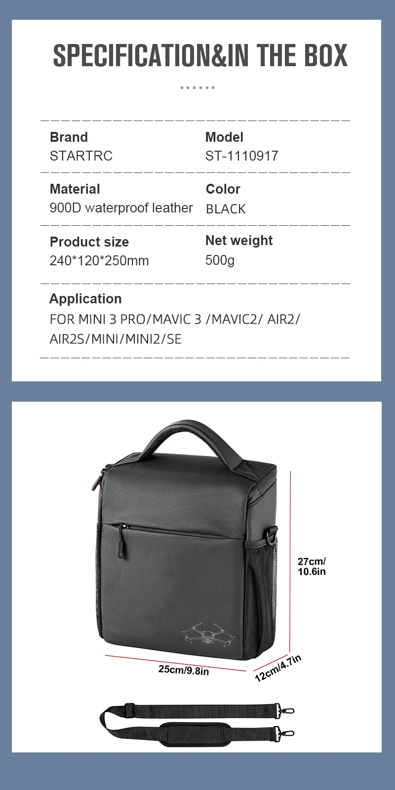 STARTRC Storage Sling Bag Carrying Case for DJI Mini 3 Pro Mavic 3 Air 2S Mini 2 with Remote Controller Accessories Drone Parts