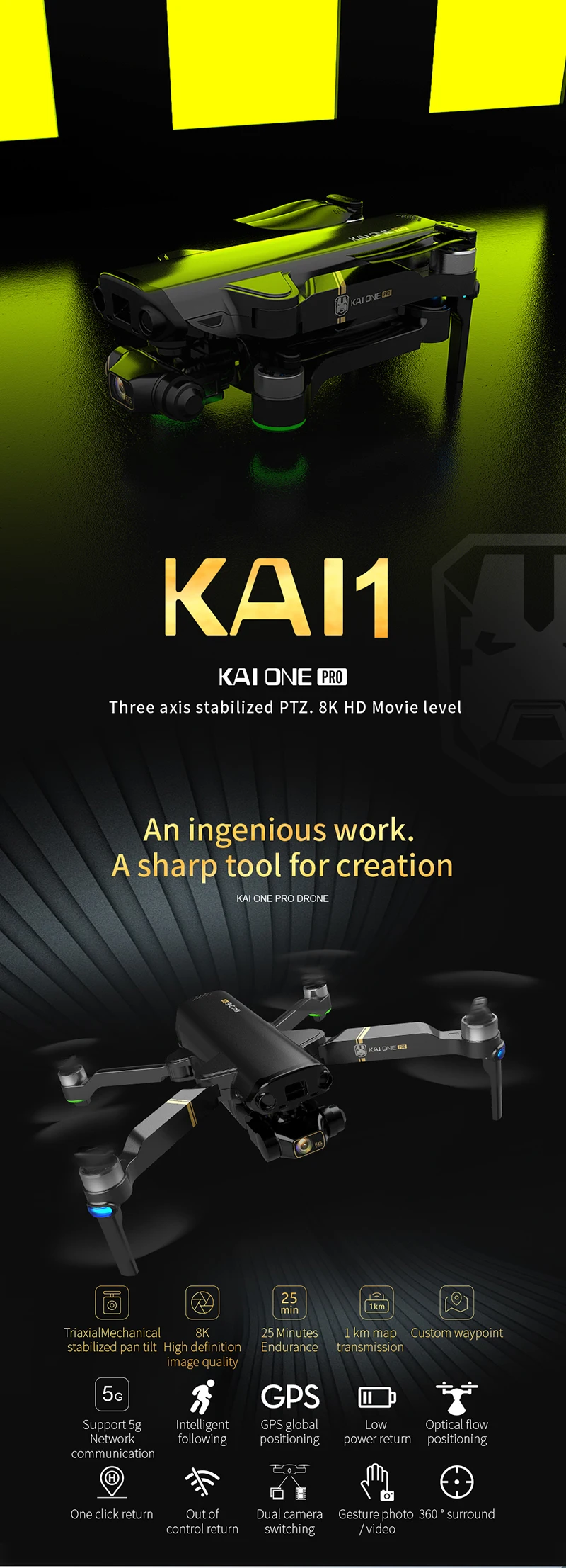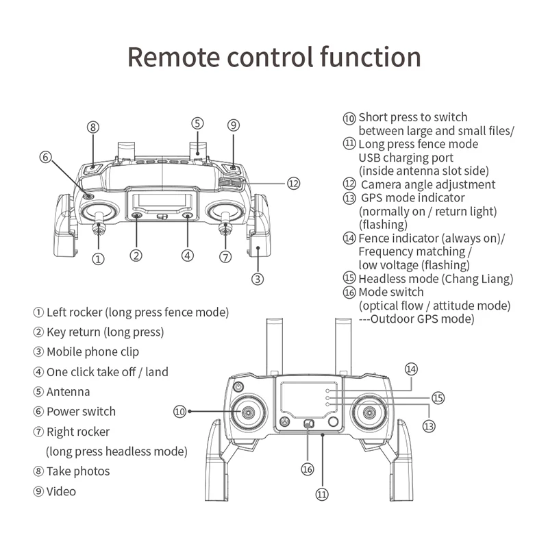 3 [Gesture photo/video] 4 [Intelligent height setting, trajectory flight] 5 [Real-time image return, HD aerial photography, wifi mobile phone control] 6 [One-button take-off and landing, one-button return] 7 [3D roll] |