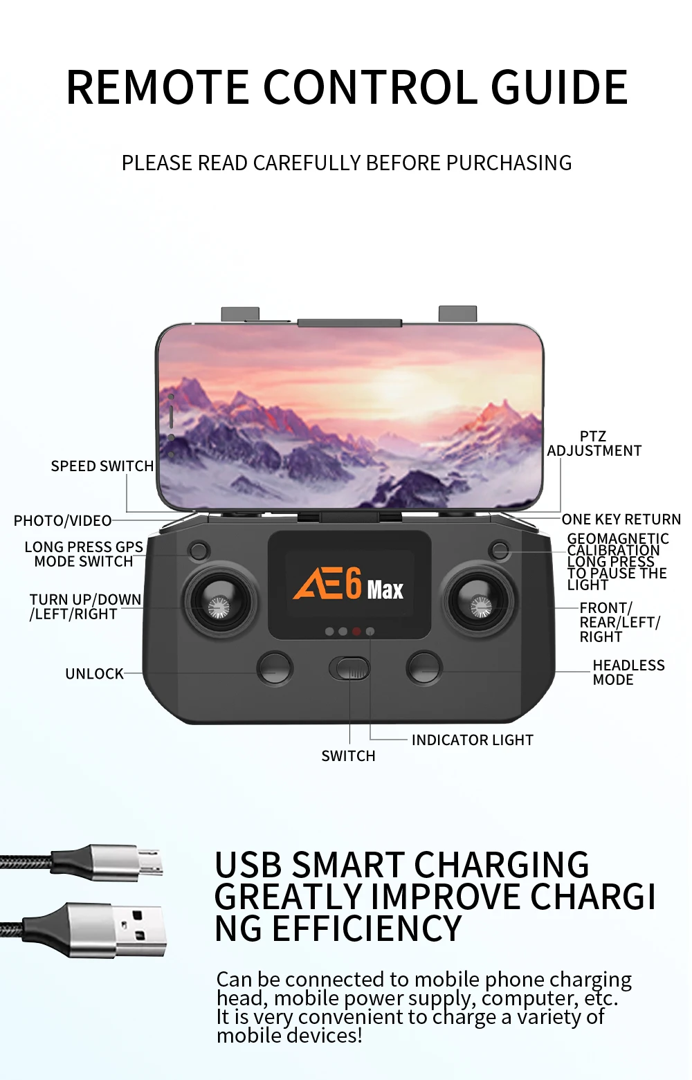 AE6 Pro Newest GPS HD 6K Camera 1200M Fpv Camara Drone Brushless Motor Foldable Quadcopter Rc Mini Drone Camera Drone