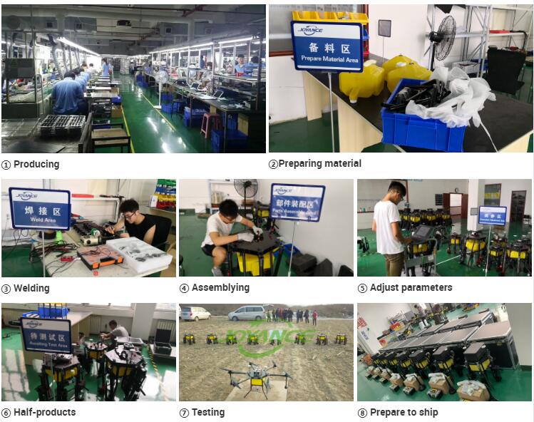 Q1. ¿Es usted pulverizador de la fábrica de drones? A1: sí, somos un fabricante profesional de drones de pulverización agrícola: drones de pulverizador, drones de espar, drones de niebla y drones de control biológico. Q2. ¿Está listo para volar un avión no tripul? A2: sí. Antes del envío, JOYANCE ensambel el dron de agricultura, establecer los parámetros y probar el vuelo en el campo, asegurarse de que todos los drones están 100% calificados y listos para volar. Q3. ¿Cuál es tu MOQ de drones agrícolas? A3: MOQ − 1. Más de 100 unidades de pedido está disponible. Además, estamos buscando distribuidores y agentes en todo el mundo. Bienvenido a ponerse en contacto con nosotros para más. Q4. ¿Cuál es el tiempo de entrega de los aeropulverizadores no tripulados? A4: 2-3 días para uno, por favor póngase en contacto con nosotros para la orden de masa. Q5. ¿Cuál es su plazo de pago? A5: 50% de depósito, saldo antes de la entrega. Aceptamos T/T, tarjeta de crédito, paypal y Western Union, etc métodos de pago.