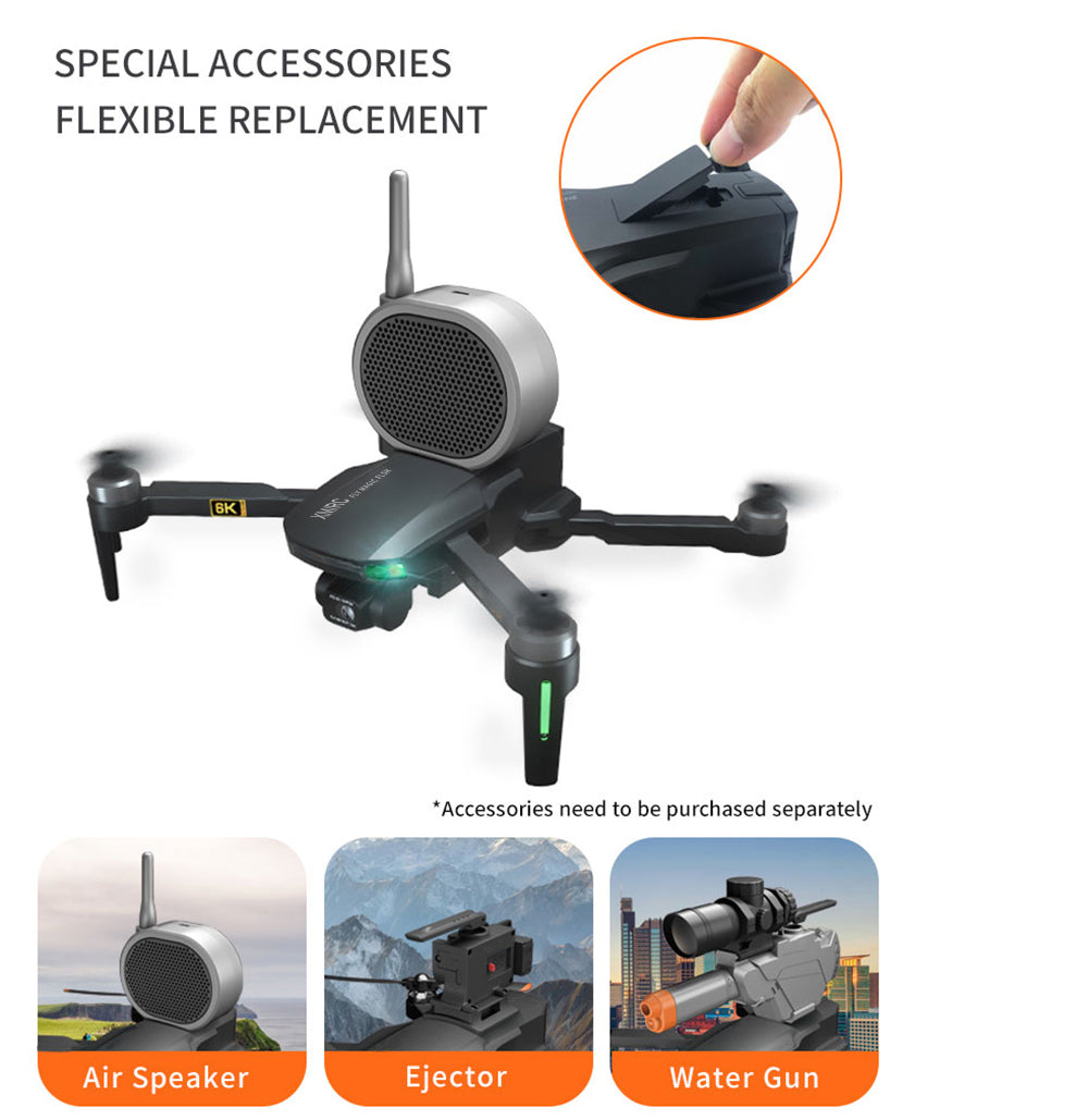 Headless mode, Altitude Hold Mode, 3D View Mode, With Camera, With LED lights, with G-sensor, 3D flip, One Key Takeoff / Landing, APP Control, Voice control, With Remote Control, foldable