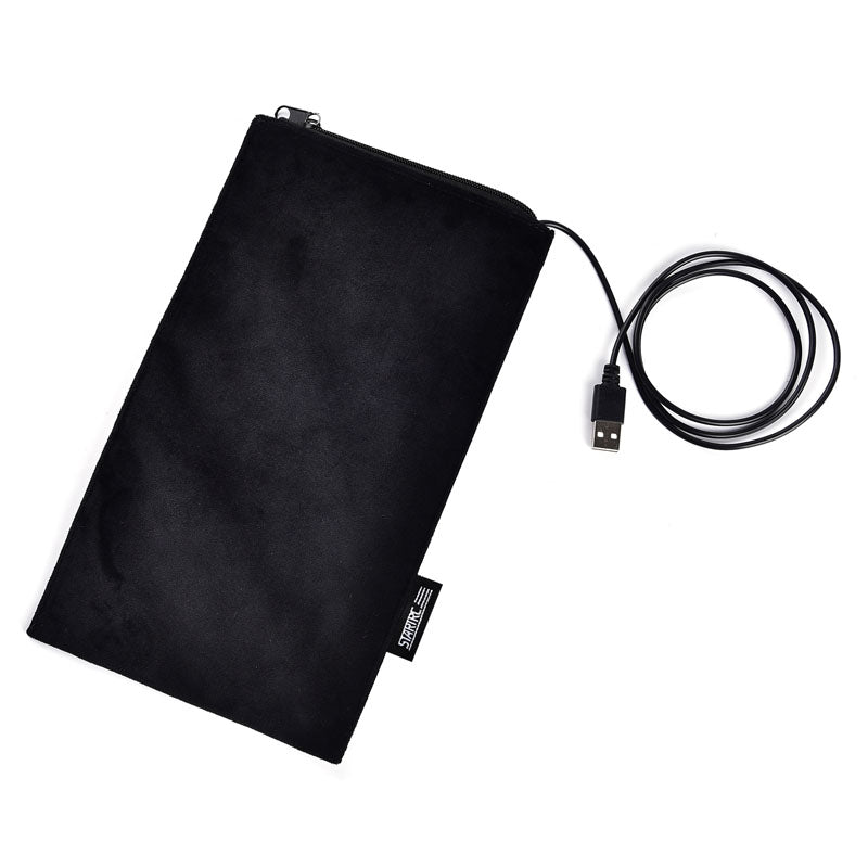 Model:1108800 Color:black net weight:62g gross weight:76g product size:260x150x10mm box size:150x88x28mm Output interface:USB Input voltage:5V Insulation range:30℃-60℃ Material:Plush cloth + aluminized thermal insulation film
