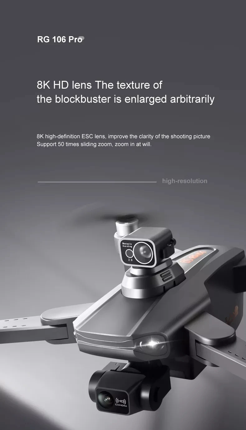 Flyxinsim RG106 Pro 8K Dual Camera 3 Axis Drone GPS Foldable Motors Brushless Gimbal Remote Control Quadcopter Drones