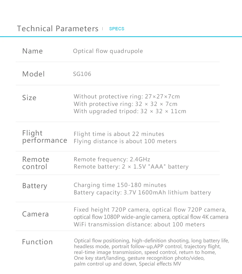 Flyxisim SG106 Drone Camera Adults 4K UHD UAV Surveillance,Remote And Receiver For RC Smartphone Drone,UAV Fixed Wing Drone 4K