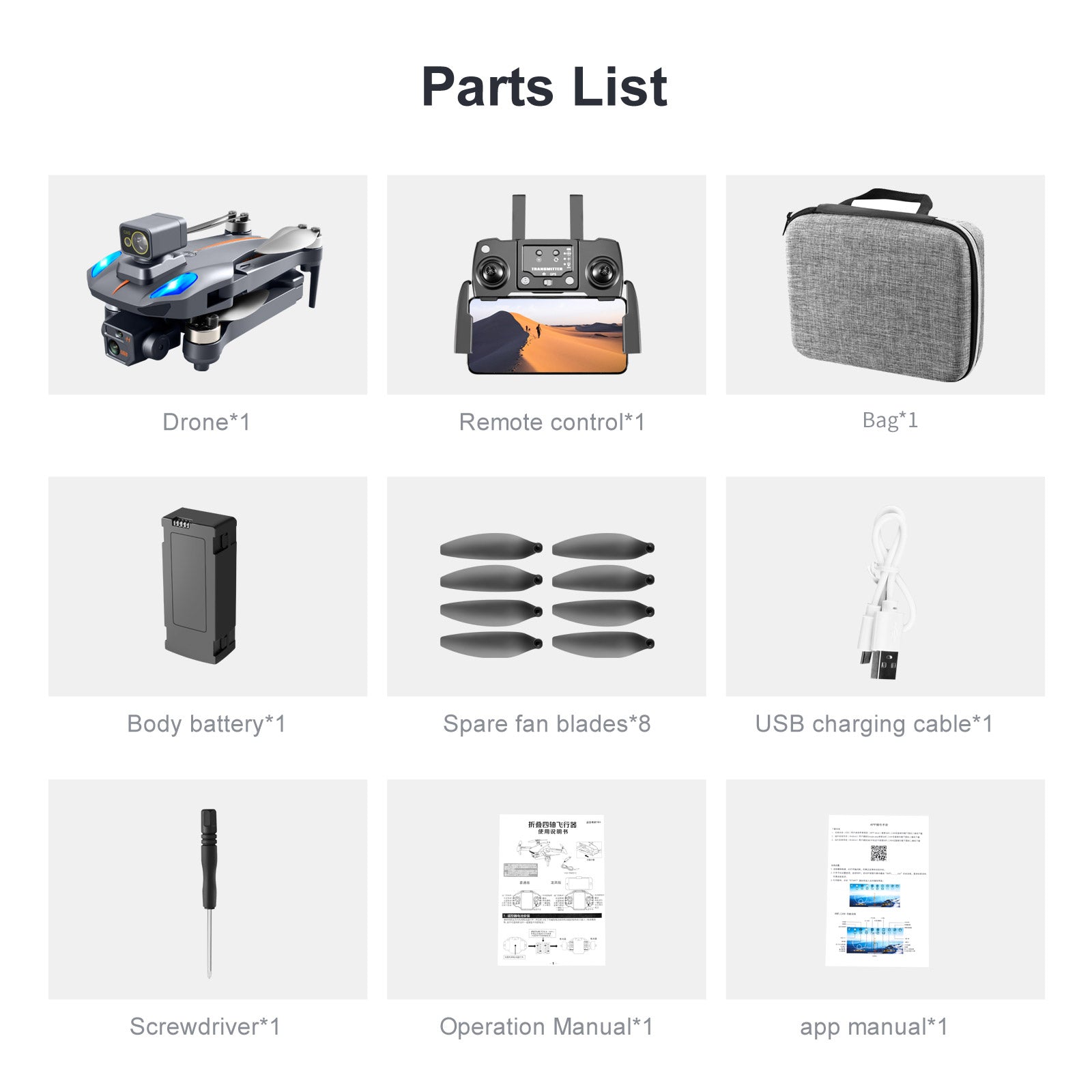 Remote control*1 Body battery*1 (multiple batteries can be selected) Storage bag*1 Manual*1 Spare fan blades*4 USB charging cable*1 Screwdriver*1 |