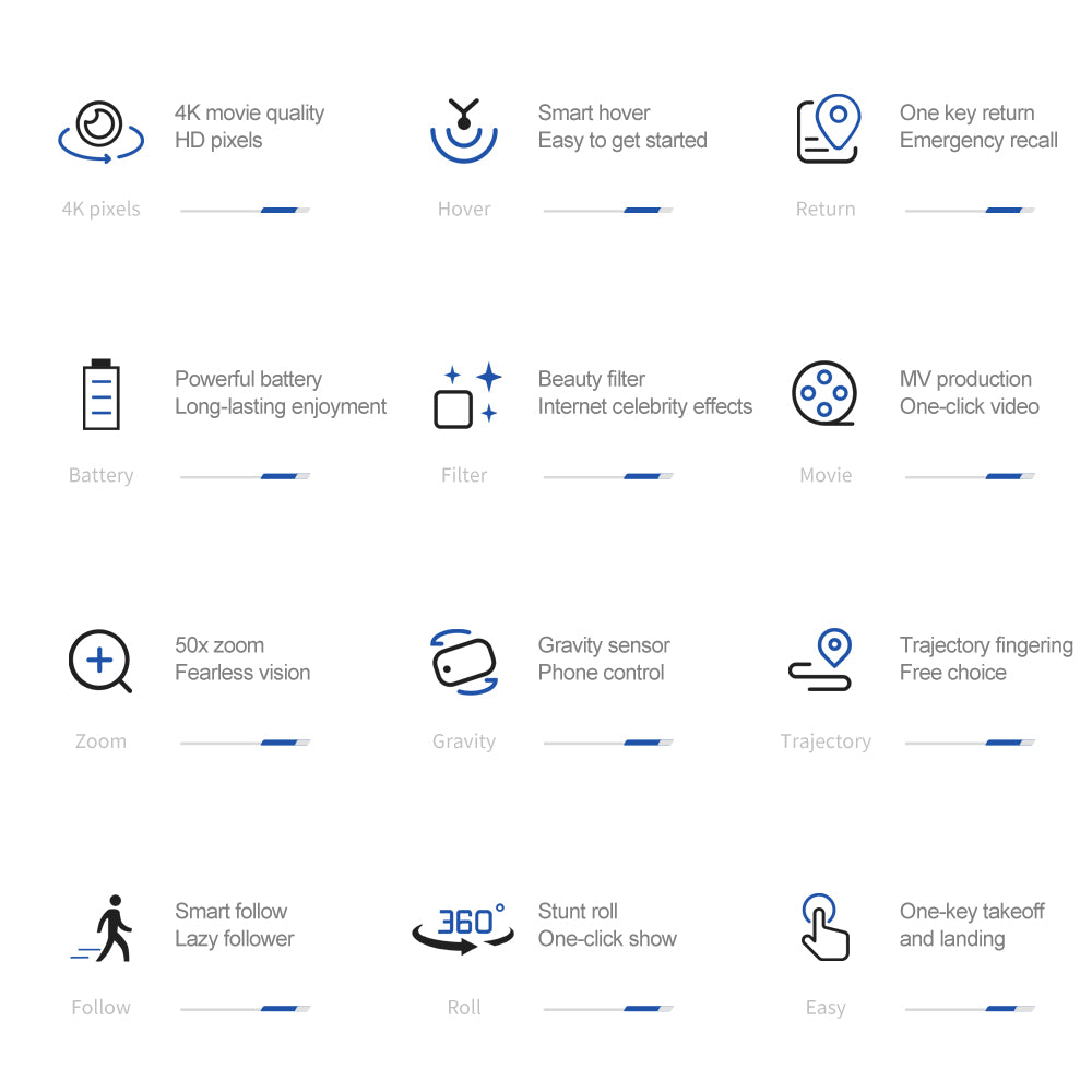 Side Flight, LED Light, Headless Mode, One-button Auto Return,