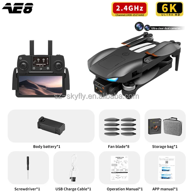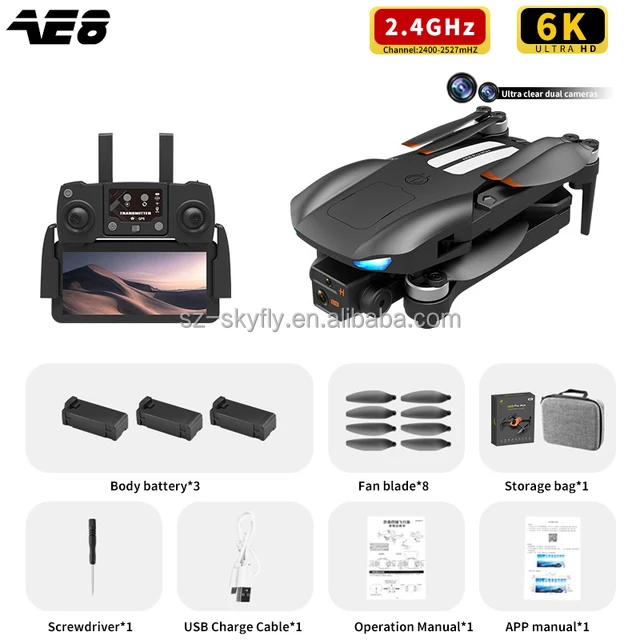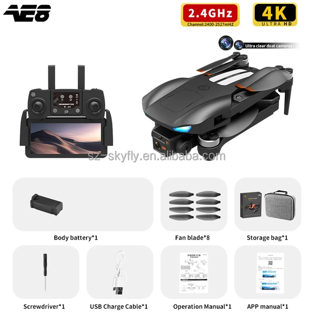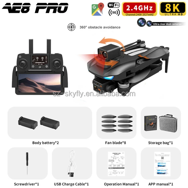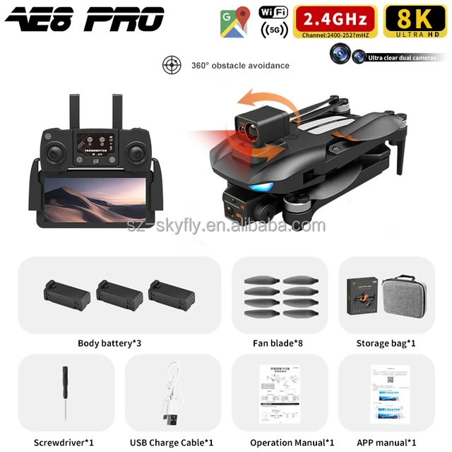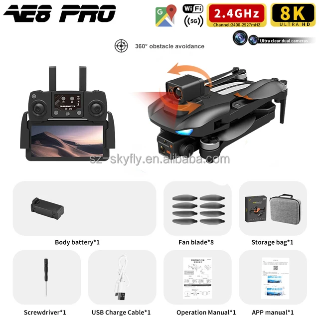 Sky Fly AE8 Pro Max GPS Drone 8K Dual Camera FPV Obstacle Avoidance Brushless Motor Drone 5KM 30Min Professional RC Quadcopter