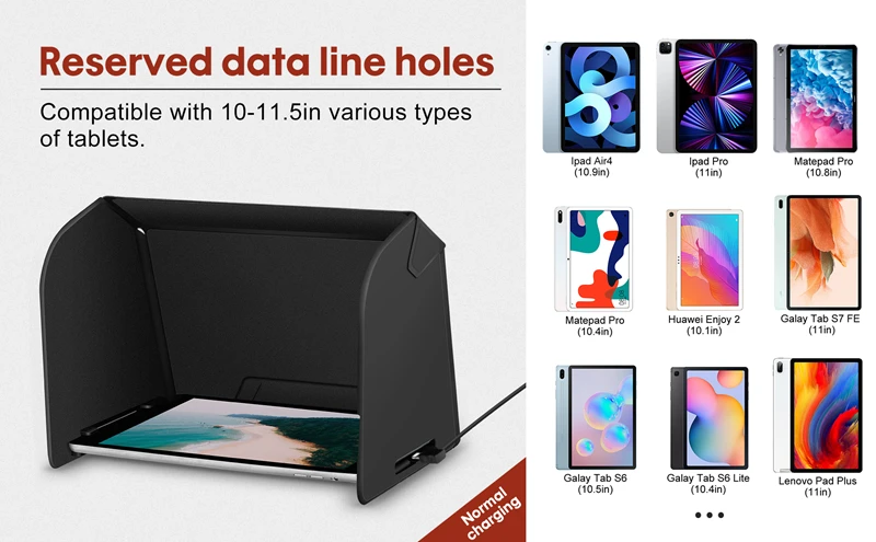 The sun hood is used for tablet computers to operate outside, reducing the interference of sunlight and dazzling light on the screen, so as to improve user’s experience.