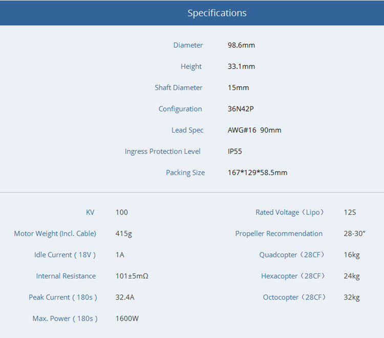 T-MOTOR U10 II KV100 brushless dc drone motors big for uav Quadcopter Hexacopter Octocopter.