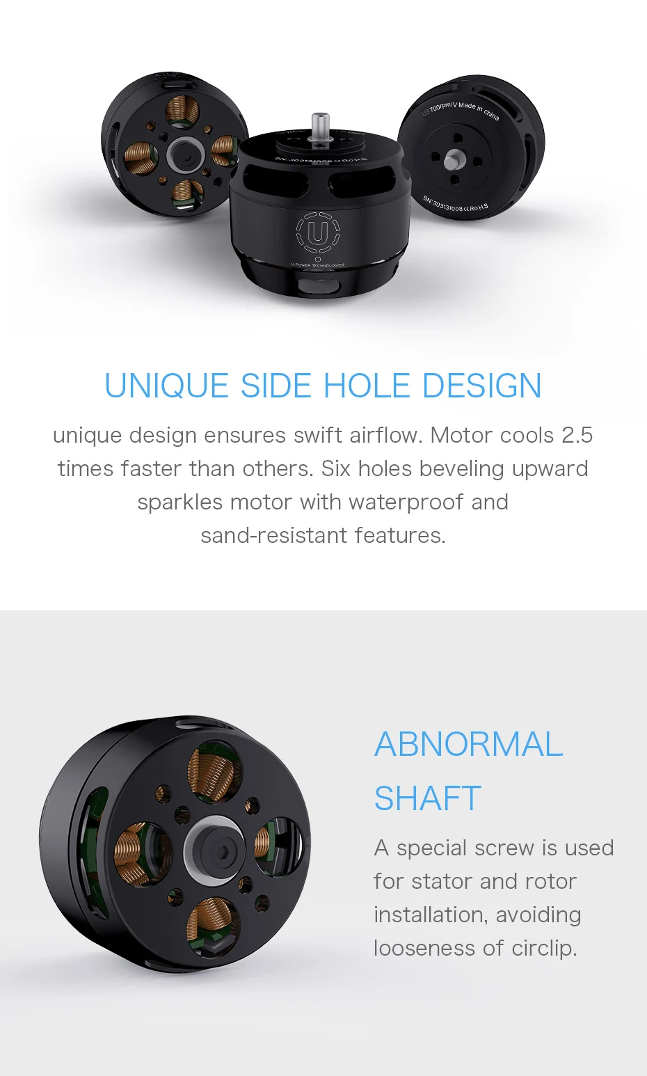 T-MOTOR U3 2023 hot sale high performance precision direct drive servo fast drone 700kv kit motor.