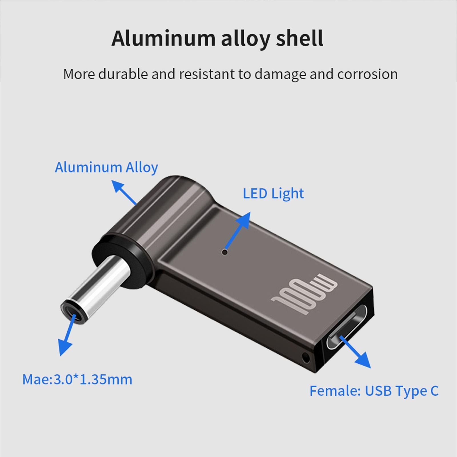 - PERFECT DESIGN: USB-C female to DC male power adapter for 100W laptop.