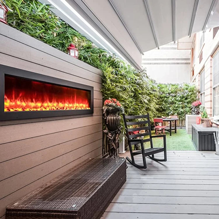 - High-intensity RGB flame options, ember bed, and accent lighting for a customizable appearance