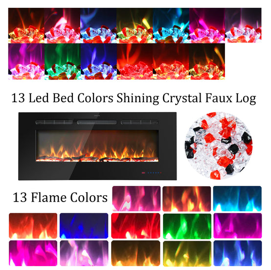 4. slimline wall mounted/built-in electric fireplace 5. Two levels heating functions 6. Safety thermal cut-off device