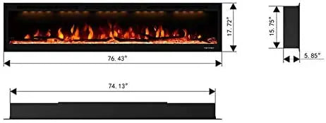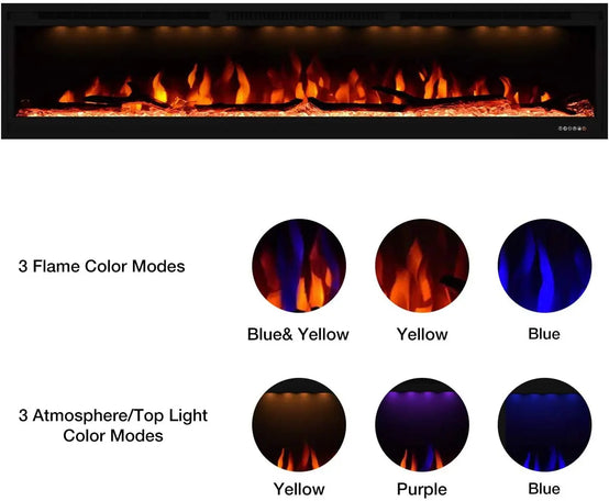 Luxstar 74 Inch Media Electric Fireplace Heaters Decorative Modern Electric Wall Mounted and Recessed 750/1500W Heater
