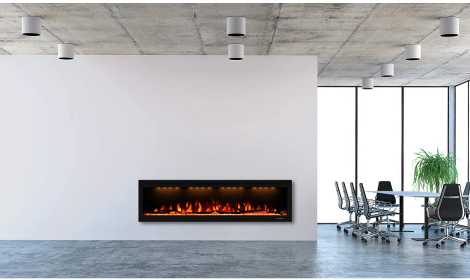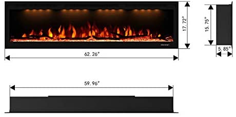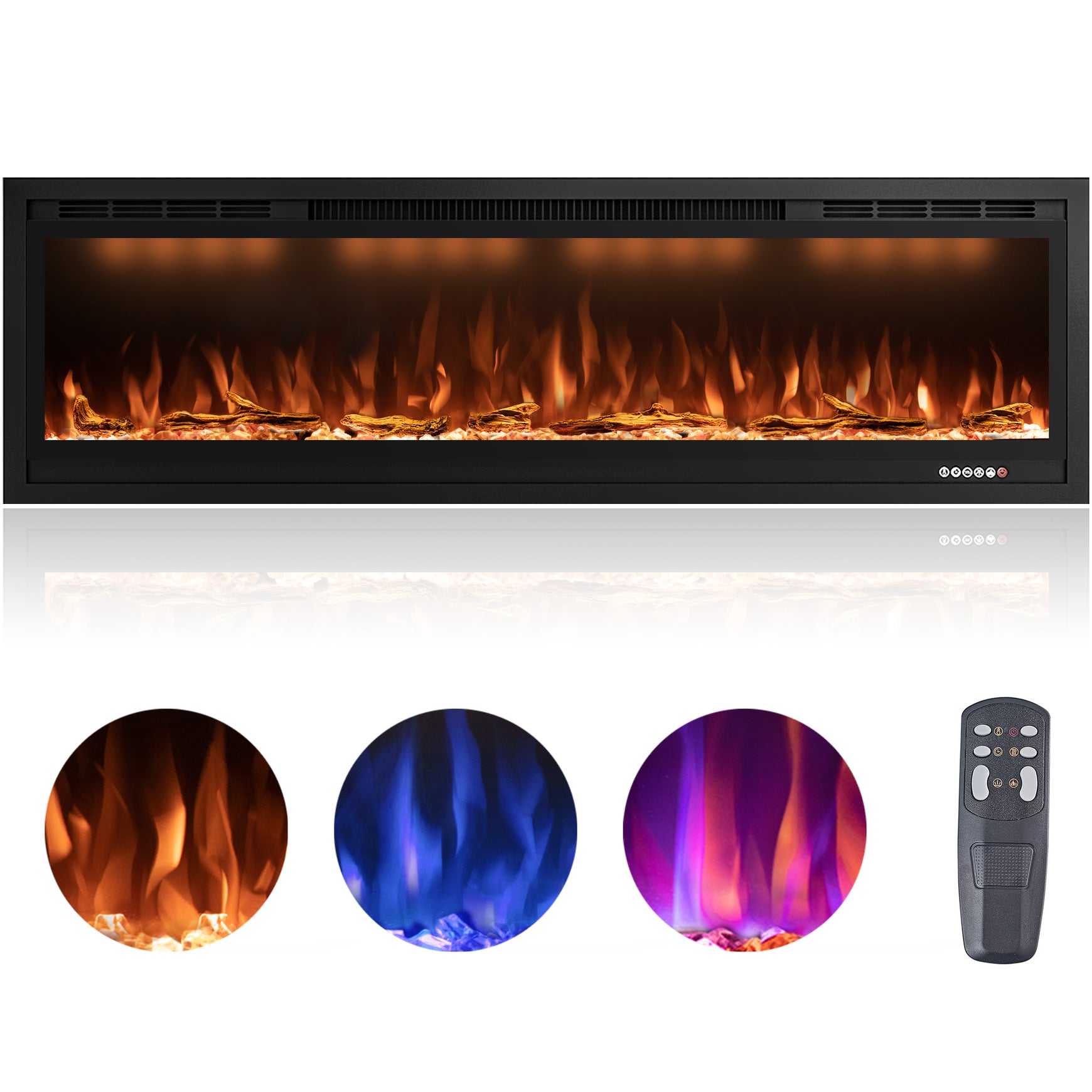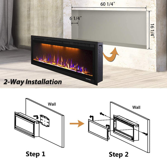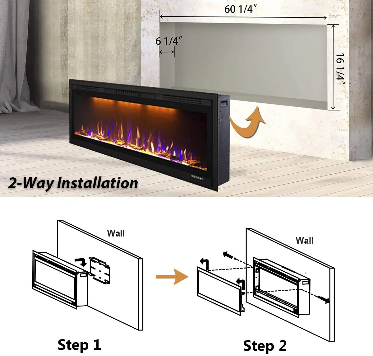 Media Electric Fireplace Heaters, 60 Inches Luxury Fireplace, Modern Recessed and Wall Mounted Fireplaces with real frame