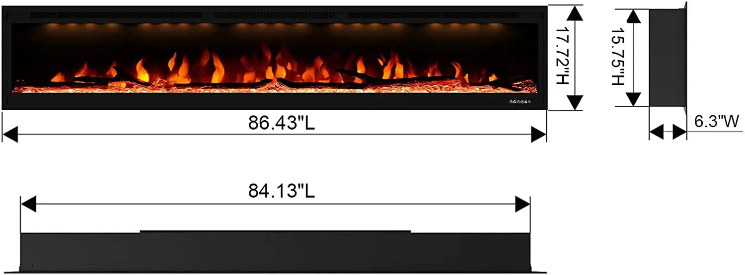 Media Electric Fireplace Heaters, 84 Inches Luxury Fireplace, Modern Recessed and Wall Mounted Fireplaces with real frame&remote