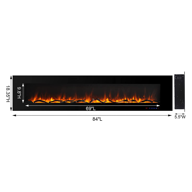 USA warehouse high quality 84 inches large size decorative flame wall mounted electric fireplace heater