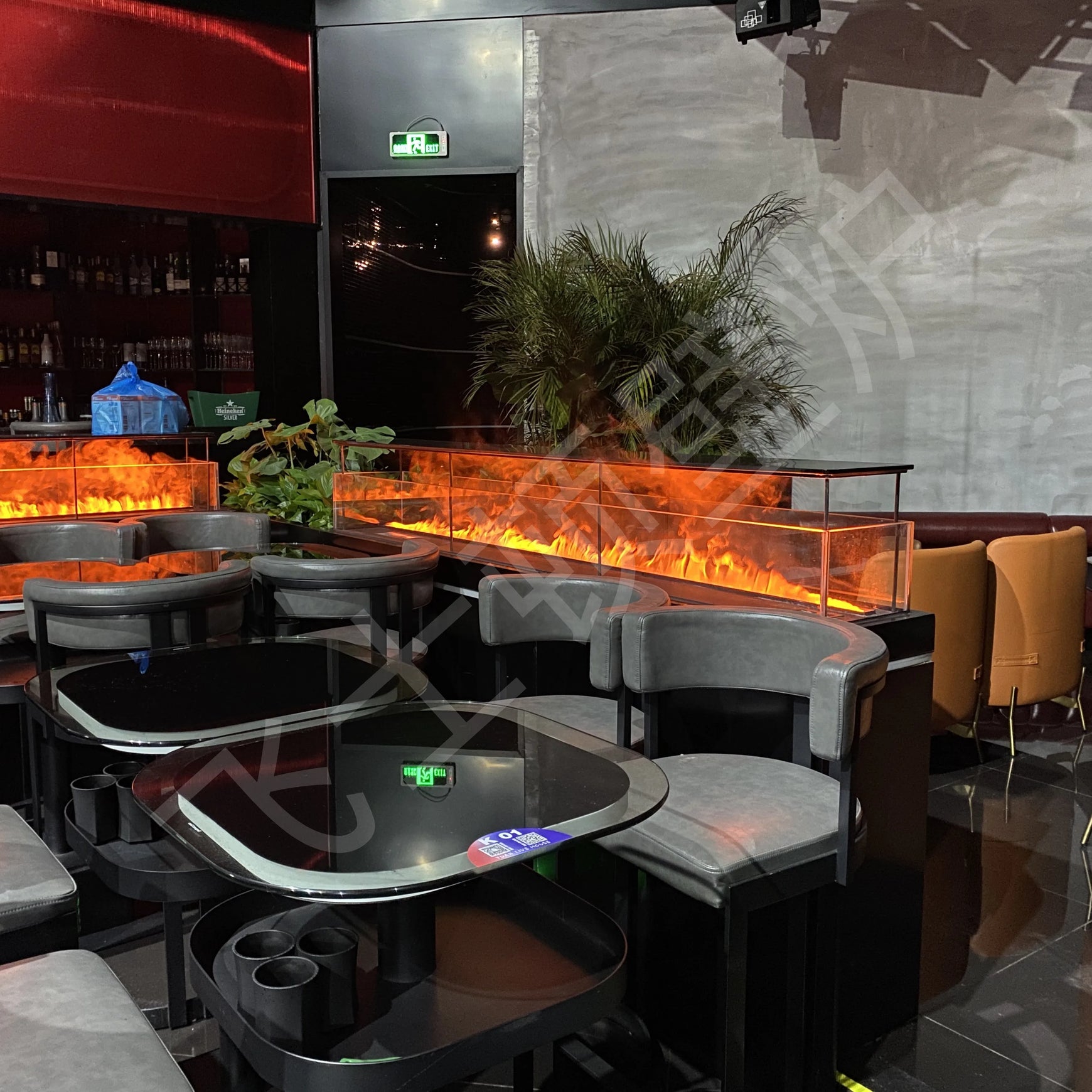 This product applies Ultrasonic Atomization technology. Ultrasonic Atomization uses piezoelectric ceramics as transducer parts, and the working frequency is in the range of ultrasonic wave band, which converts electrical energy into mechanical energy, using mechanical energy to turn liquid into fog is a kind of atomization method, which is equipped with special machine structure and halogen light fixtures as the background, thus producing special physical phenomena to create realistic flame effect, safe, at the same time, the indoor dry air can be humidified to improve the indoor dry air caused by air conditioning.