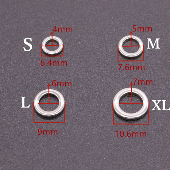 CASTFUN Diameter from 6.4 to 10.6mm Fishing Assist Hooks Ring Fishing Lures Tackle Stainless Steel Solid Ring