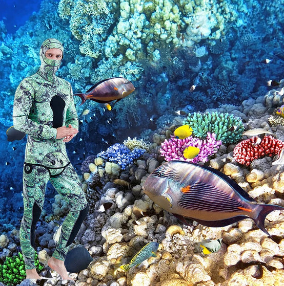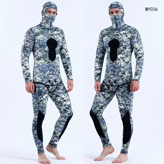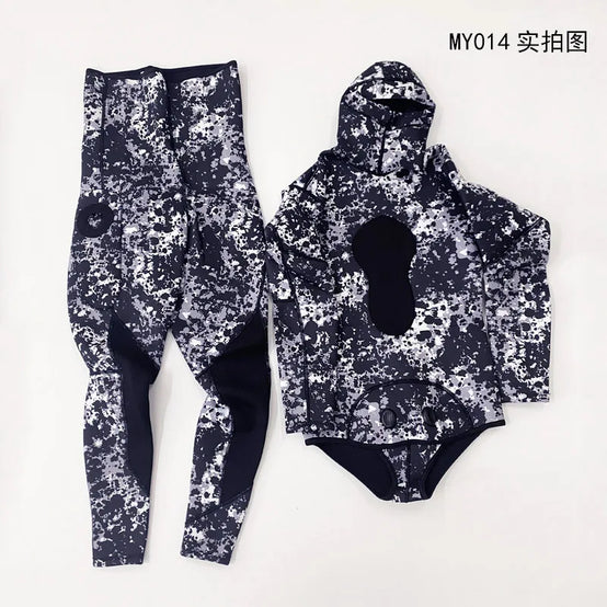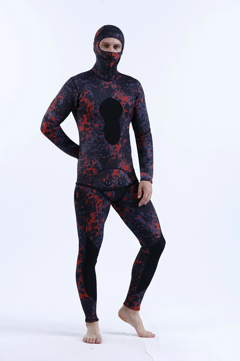 New fashion hood camo spearfishing wet suit customized men women 3mm camo neoprene diving wetsuits long sleeve warm diving suit